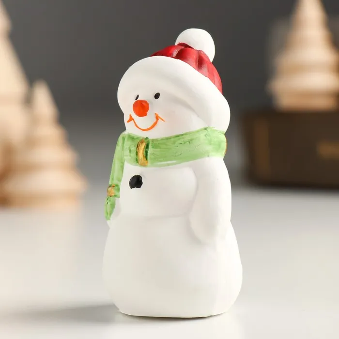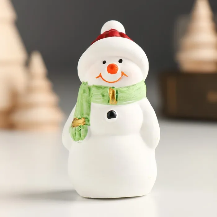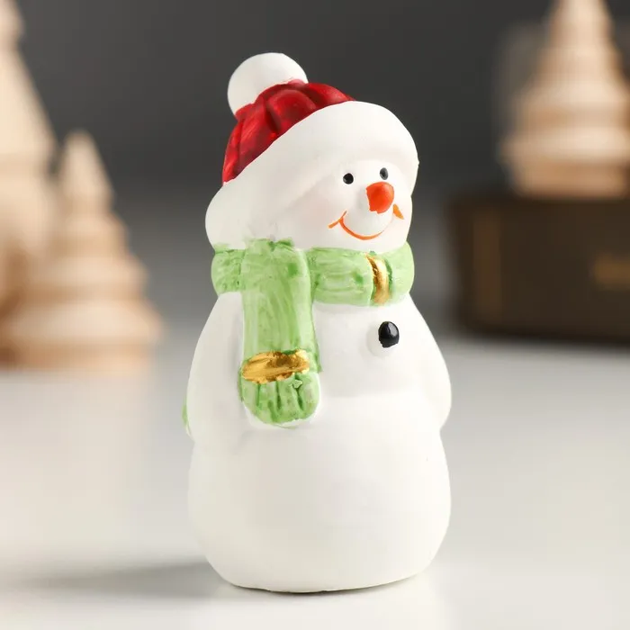 Фигурка керамика «Снеговичок в красной шапке и зелёном шарфике», 3.5×2.8×6.5 см, МИКС — Характеристики