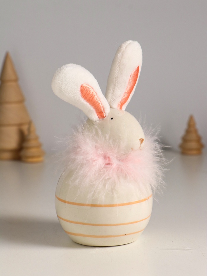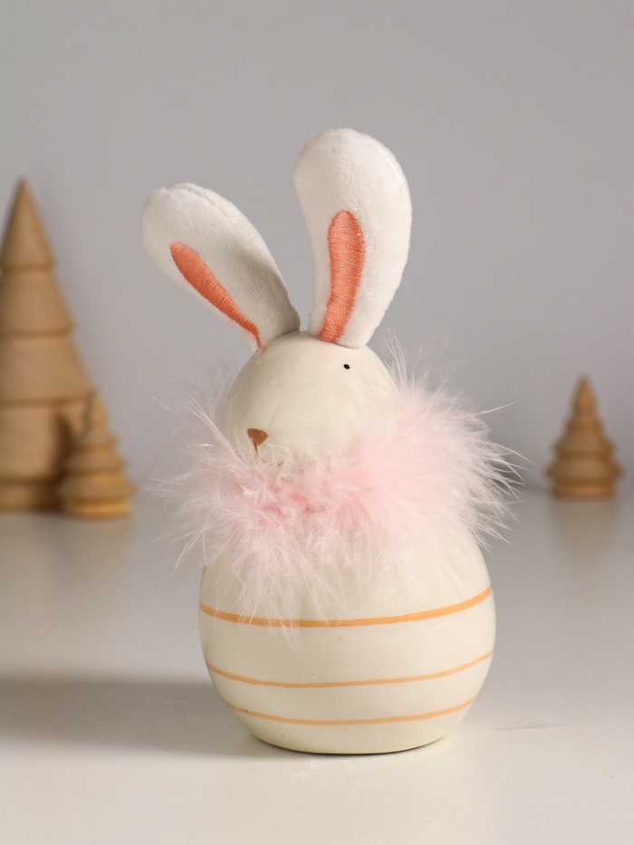 Нежная фигурка зайчика из керамики с текстильными элементами привносит в интерьер лёгкость и уют. Её округлая форма и белоснежный цвет с тонкими акцентами создают гармоничный образ, который идеально впишется в праздничное оформление к Пасхе или станет универсальным украшением в любое время года. Высота 15,5 см позволяет разместить изделие на полке, столе или подоконнике, добавляя интерьеру изысканности и тепла.
