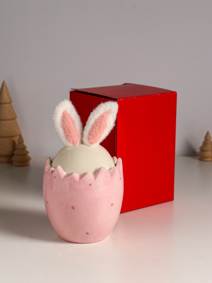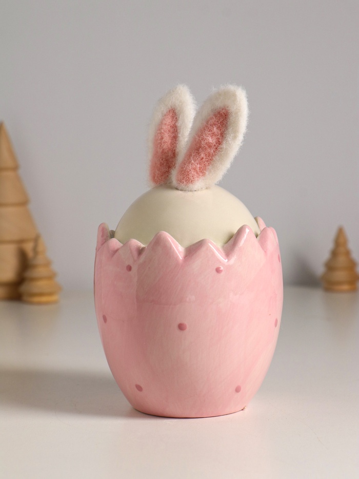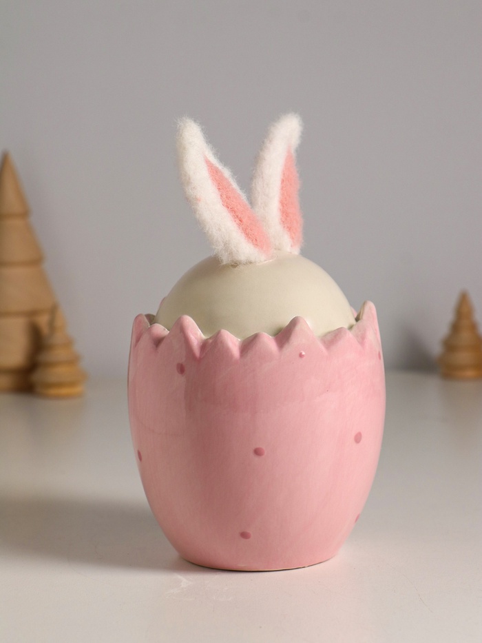 Фигурка керамика, текстиль «Зайчик в яйце», розовый, 9×9×15.5 см — Характеристики