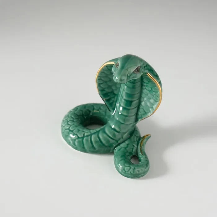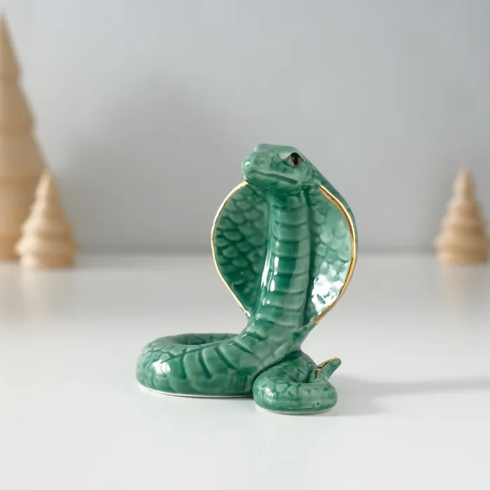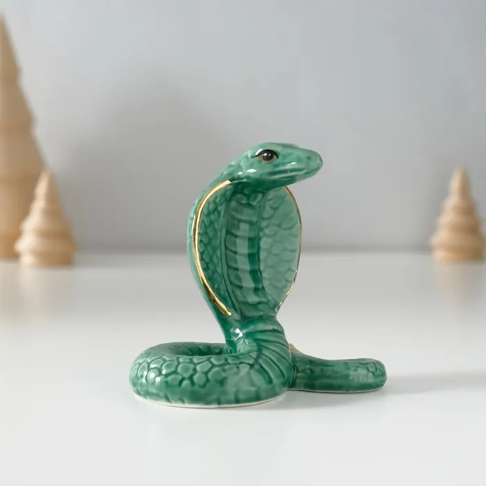 Фигурка керамика «Тёмно-зелёная кобра», с золотом, 4.7×8×7.5 см — Характеристики