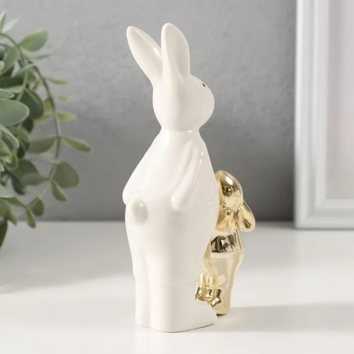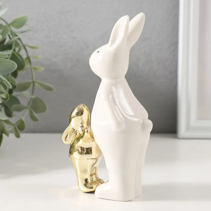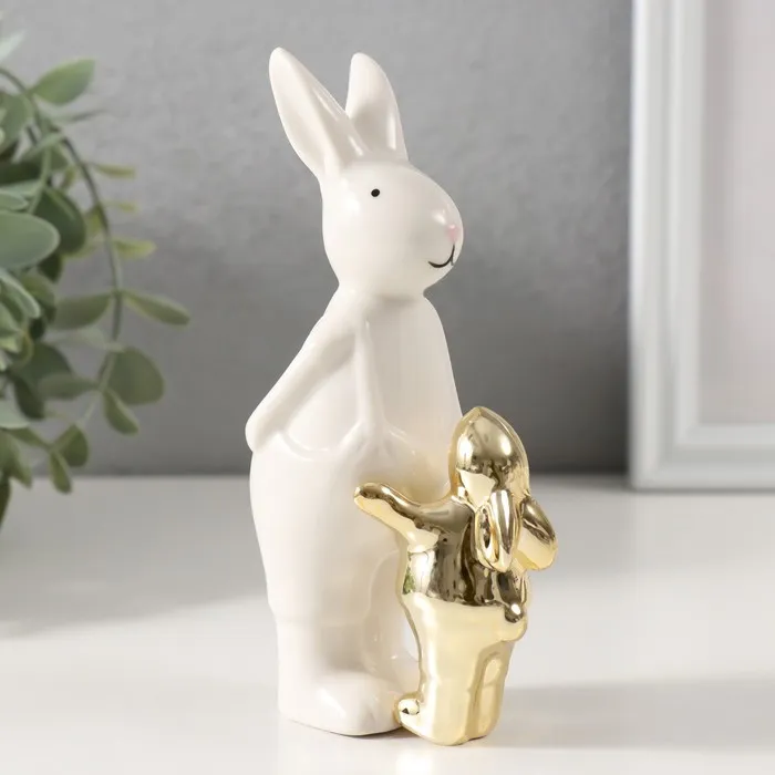 Фигурка керамика «Заяц в комбинезоне с золотым зайчонком», 7.5×4.5×13.8 см — Характеристики