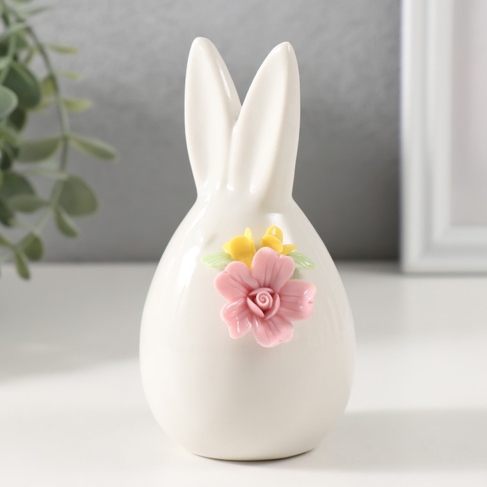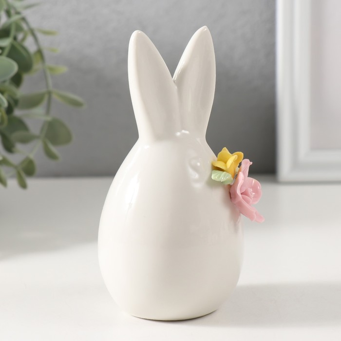 Фигурка керамика «Зайчик белый пухлый с букетом», 6.6×6.3×11.9 см — Характеристики