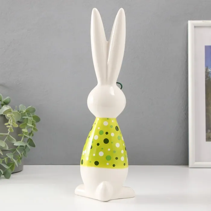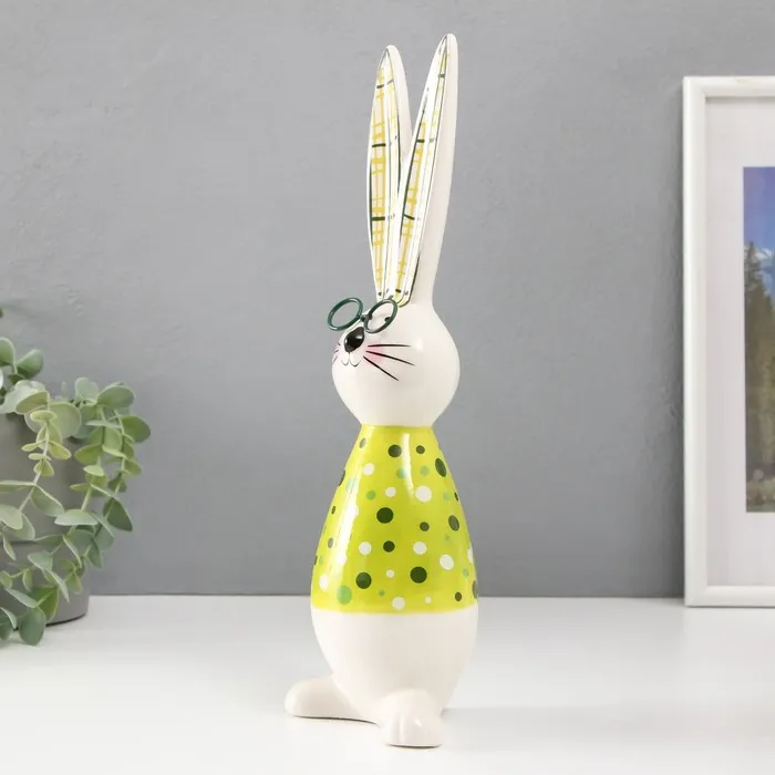 Этот керамический зайчонок высотой 30,5 см — настоящий джентльмен в очках и стильной рубашке в горошек. Его жизнерадостный жёлто-зелёный образ словно впитал в себя солнечный свет и свежесть весенней листвы.