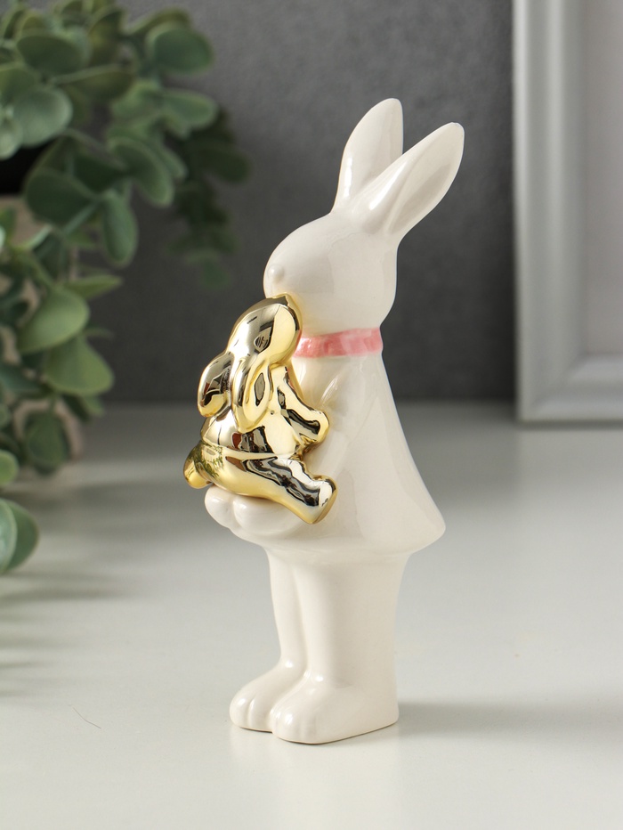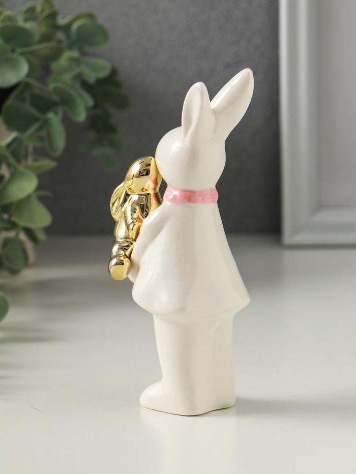 Фигурка керамика «Зайка белая с золотым зайчонком», 6.5×4.5×13.5 см — Характеристики