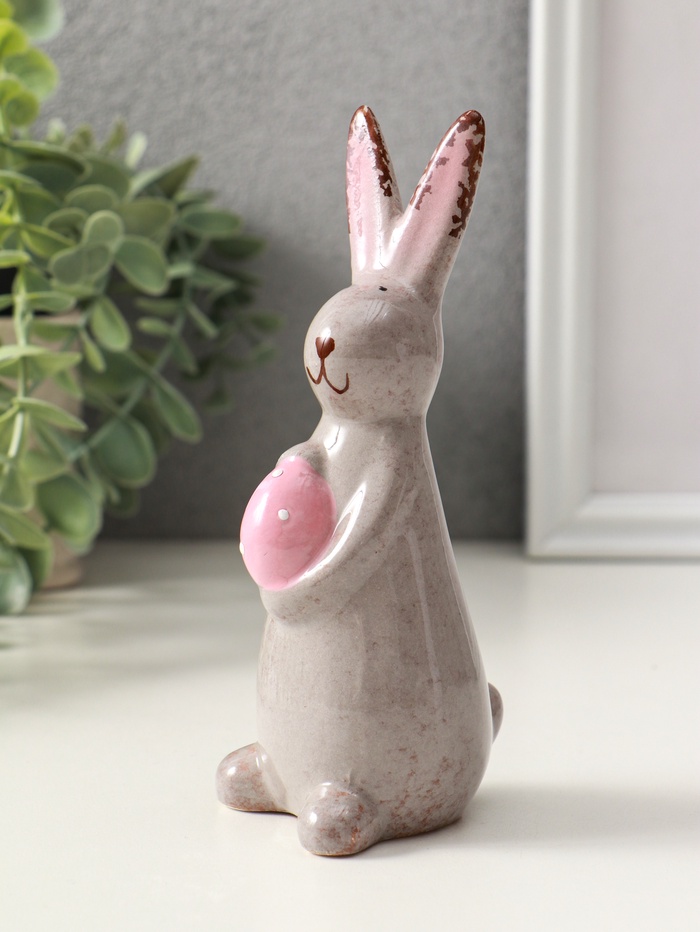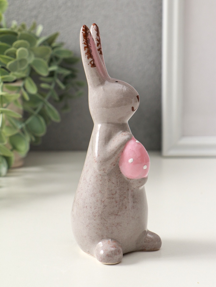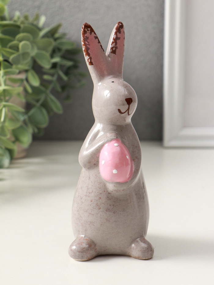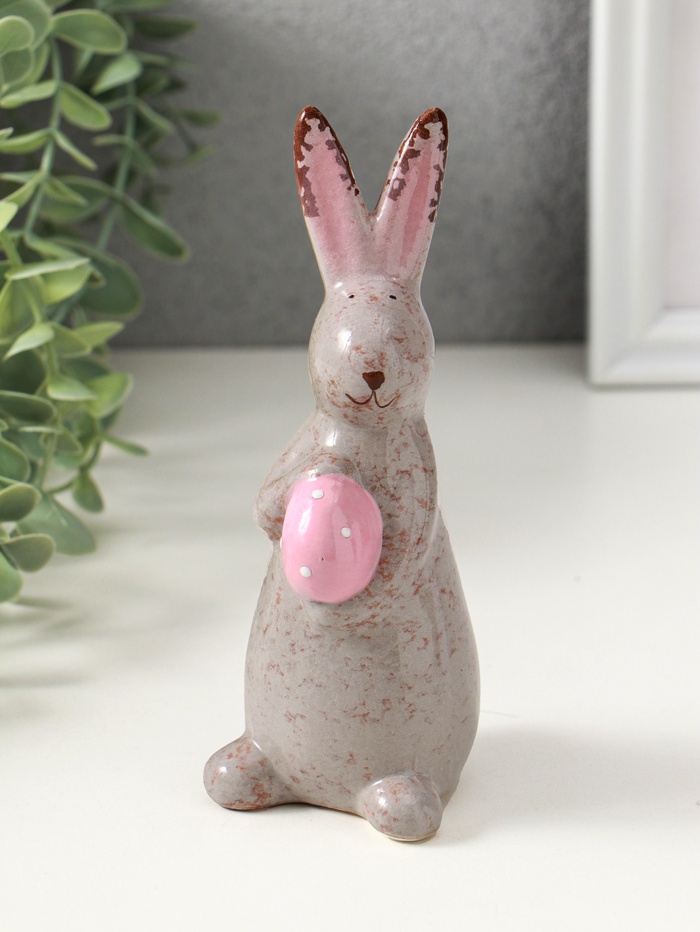Эта керамическая фигурка зайки с яйцом — тёплый символ домашнего уюта и весеннего праздника. Сдержанный серый цвет и лаконичная форма делают её универсальным украшением интерьера, которое будет уместно не только на Пасху, но и в любой день, напоминая о простых радостях.