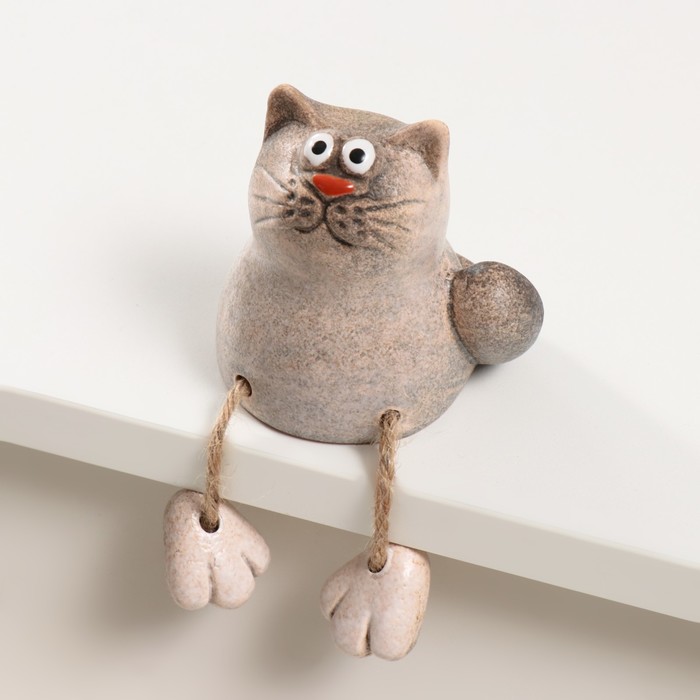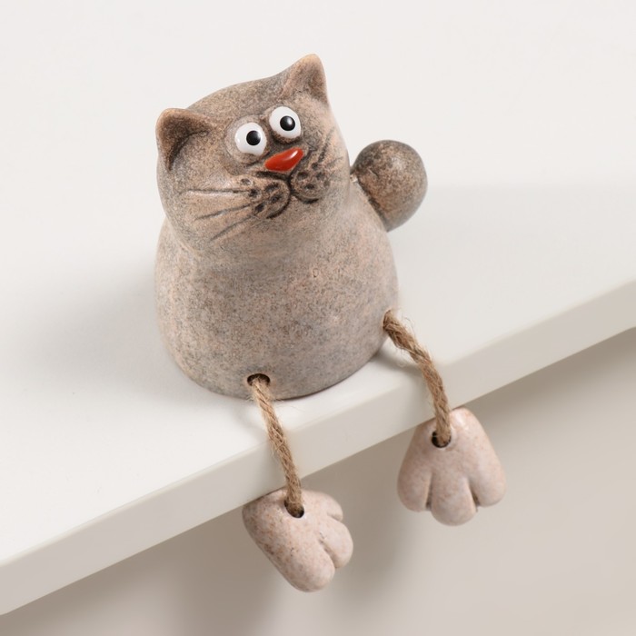 Фигурка - колокольчик настольный «Серая кошечка с висячими лапками», на полку, керамика, 6.8×8.1×8.2 см — Характеристики