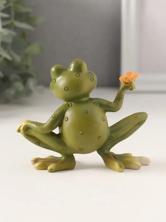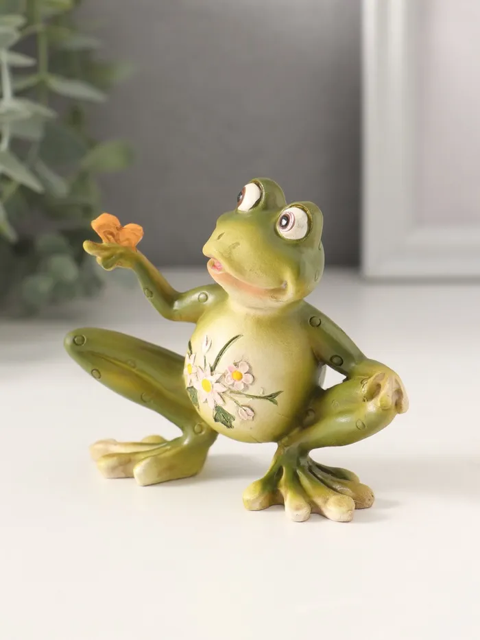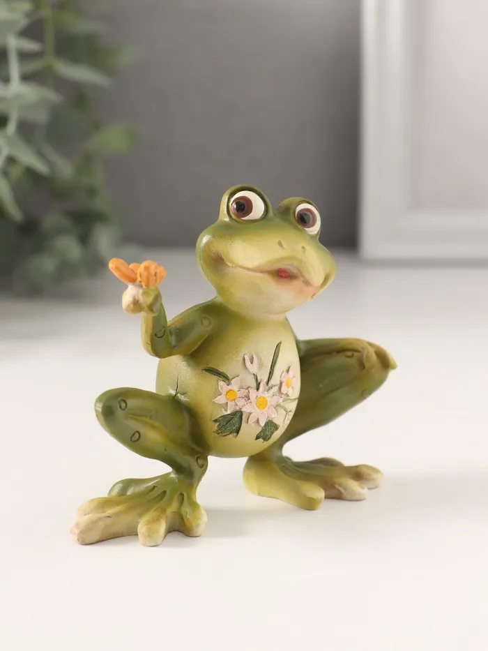 Очаровательная фигурка с бабочкой и цветами на животике станет ярким акцентом в вашем интерьере. Этот зелёный лягушонок, выполненный из прочного полистоуна, привнесет в ваш дом атмосферу веселья и радости, а также станет отличным подарком для близких.