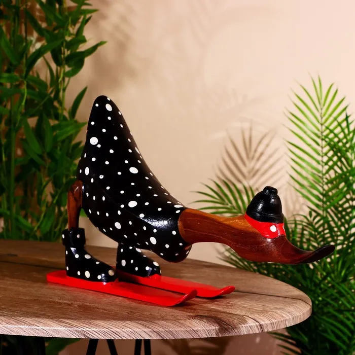 Сувенир «Утка-лыжник в чёрном», 33 см, дерево