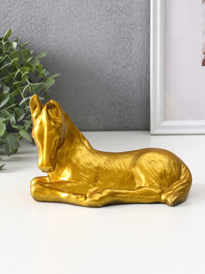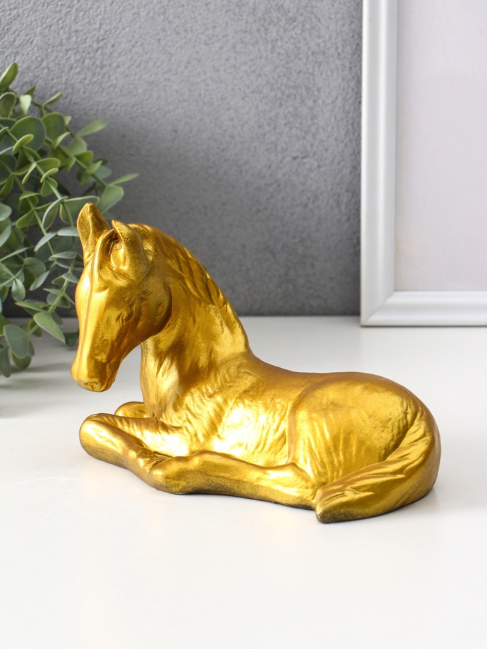 Изящная фигура лошади, выполненная из гипса с позолотой, станет изысканным акцентом в вашем интерьере и символом наступающего 2026 года. Компактные размеры 12.5×20×10 см позволяют разместить её в любом уютном уголке дома или офиса, придавая пространству теплую атмосферу и благородный блеск.