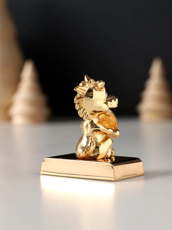 Пусть этот изящный золотистый талисман станет символом процветания и добрых перемен в вашем доме. Миниатюрная фигурка с монеткой — не просто украшение, а настоящий магнит для удачи, воплощенный в благородном образе лошади, символизирующей силу, успех и движение вперед.