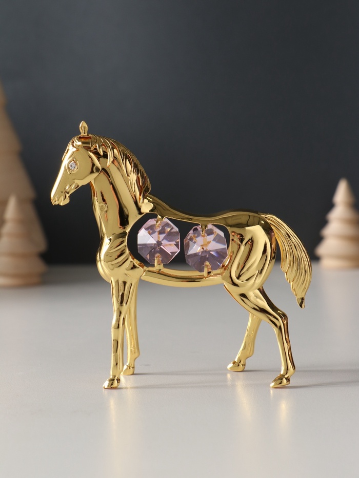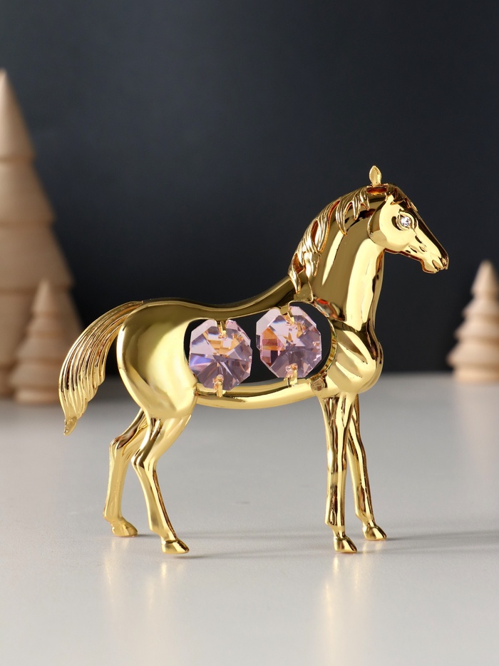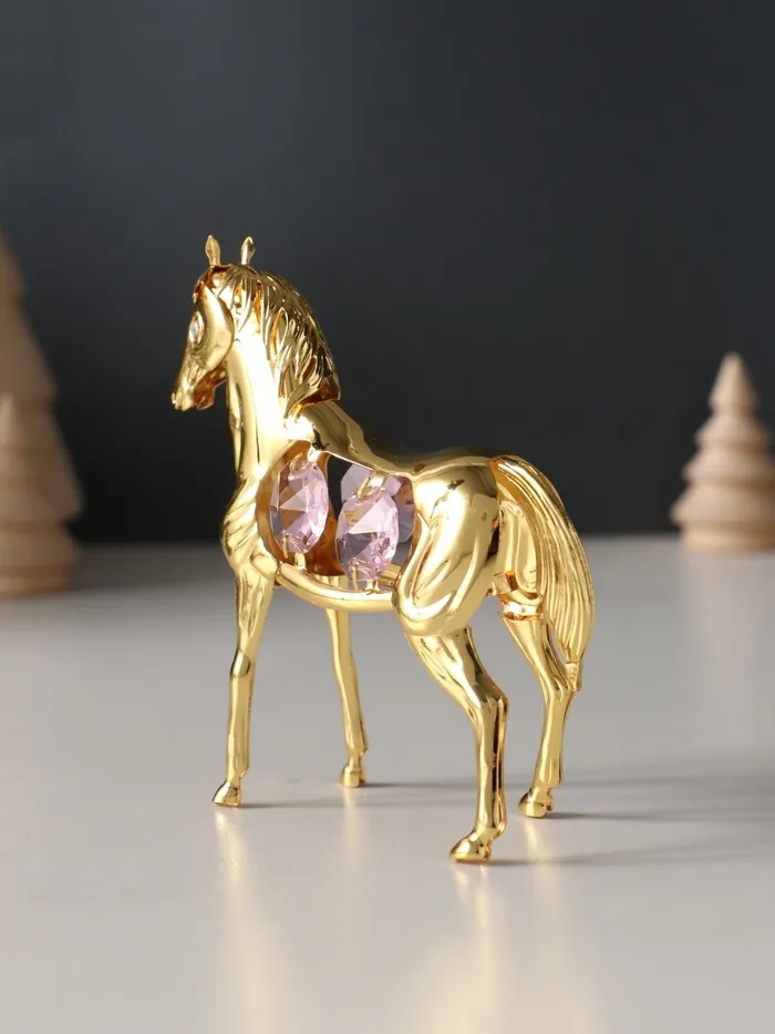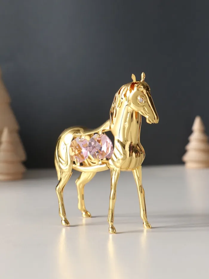Представляем изысканное сочетание элегантности и символической силы — металлическую фигуру, воплощающую благородство и стремление к успеху. Эта лошадь с четырьмя розовыми хрусталиками станет не просто украшением вашего пространства, а источником вдохновения, который наполнит ваш дом или рабочее место особой энергетикой.