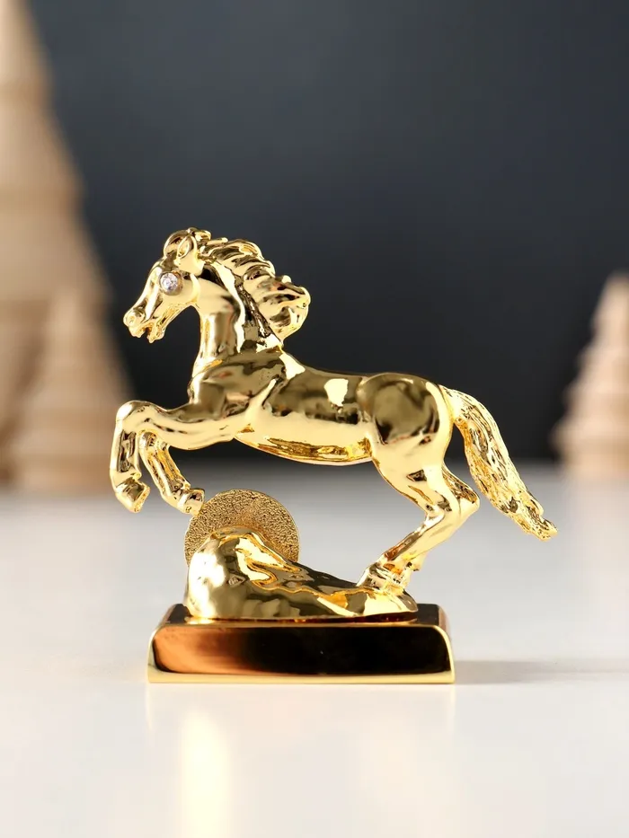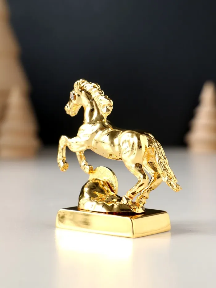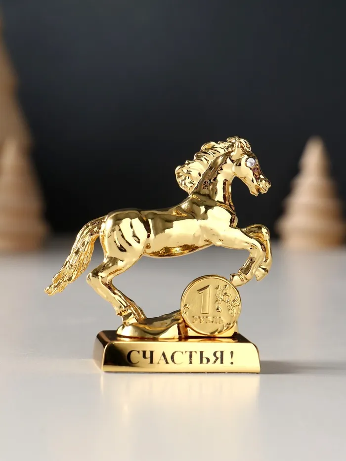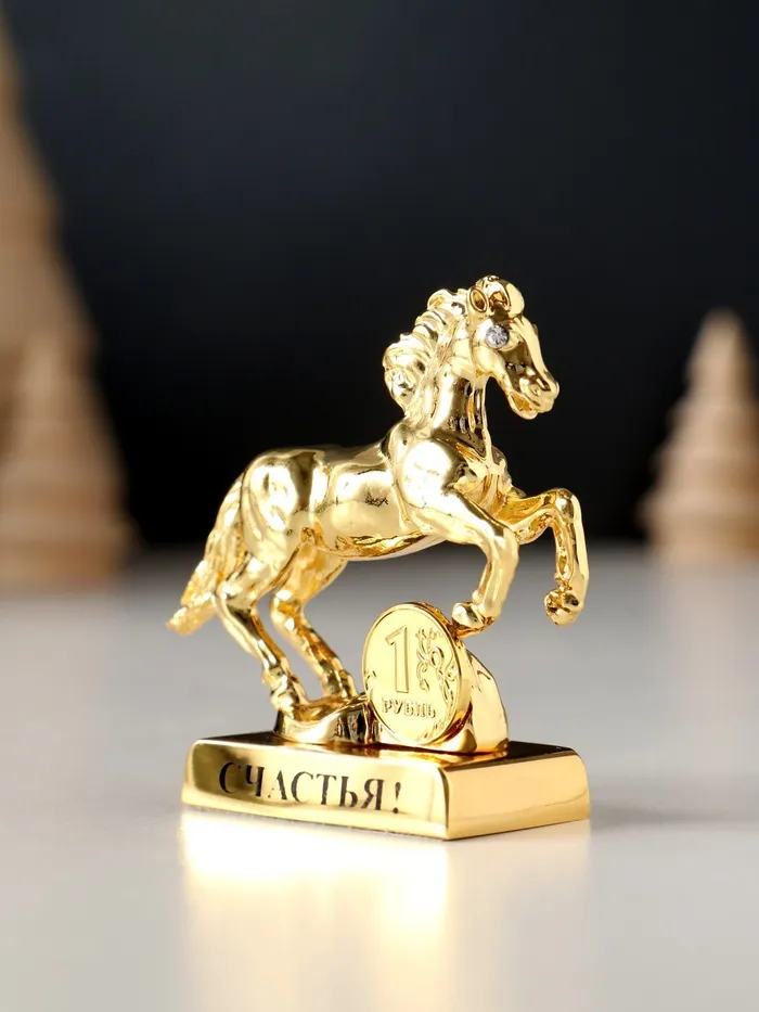 Представляем вашему вниманию небольшой, но удивительно значимый предмет, который станет не просто украшением, а настоящим символом удачи и благополучия. Эта металлическая фигурка в форме лошади дополнена монеткой и пожеланием «Счастья», что делает её идеальным выбором для подарка или личного талисмана. Её золотистый цвет и компактные размеры (6×2.5×6 см) позволяют легко разместить её на полке, рабочем столе или в качестве элемента праздничной композиции.