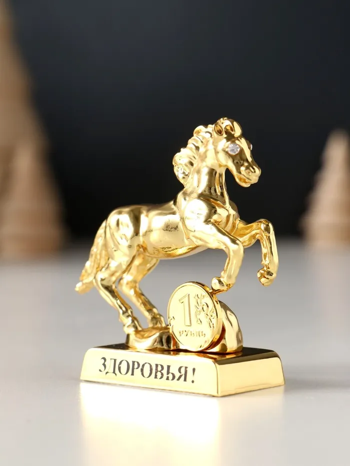 Металлическая фигурка в виде лошади с монеткой и выгравированным пожеланием «Здоровья» — это сочетание изящества и глубокой символики, воплощённое в компактном размере 6×2.5×6 см. Золотистый цвет металла придаёт изделию благородство и теплоту, делая его универсальным украшением для дома или рабочего пространства.