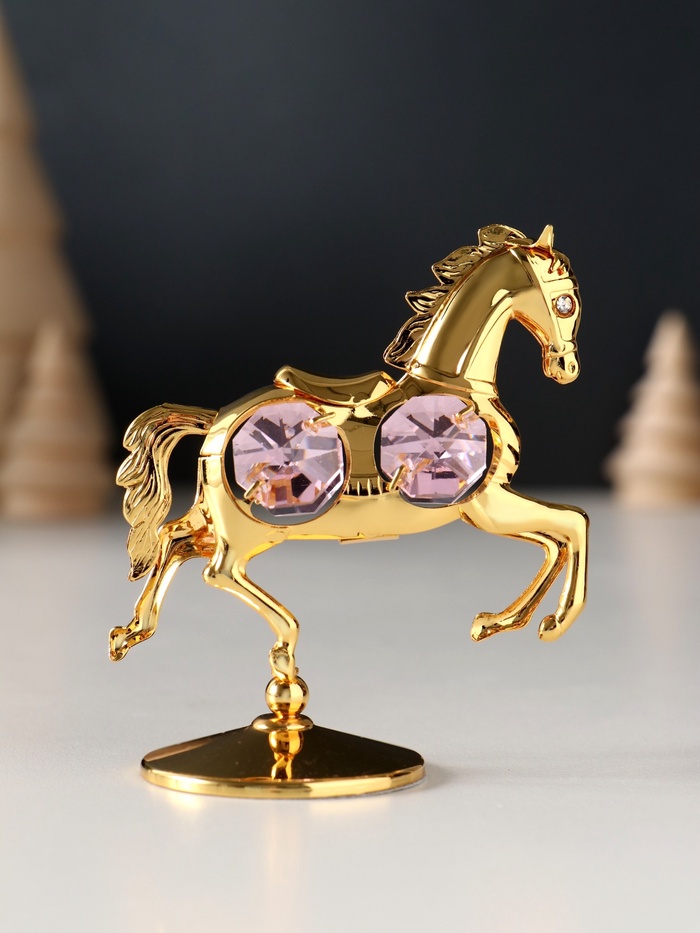 Фигурка металл «Лошадка маленькая» с 4 розовыми хрусталиками на подставке, 6.5×4×8.5 см