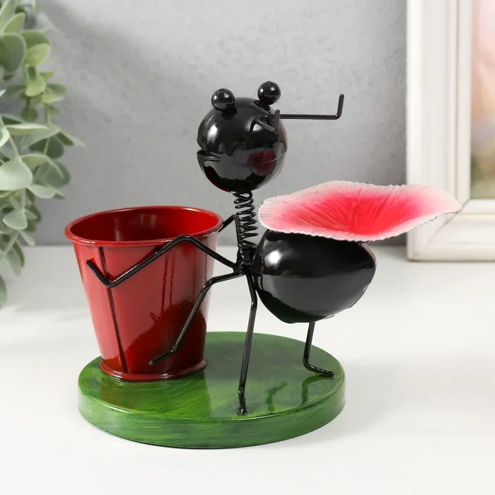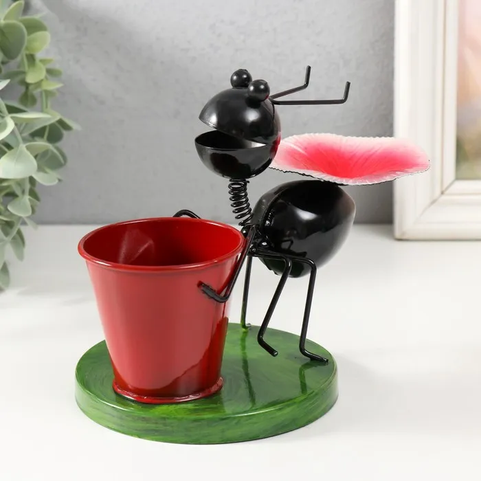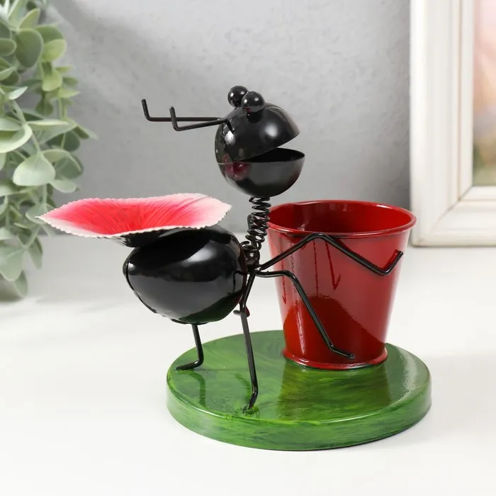 Фигурка металл «Муравей и цветок», с карандашницей, подставка для мелочей, 17.5×11×13 см, МИКС — Характеристики