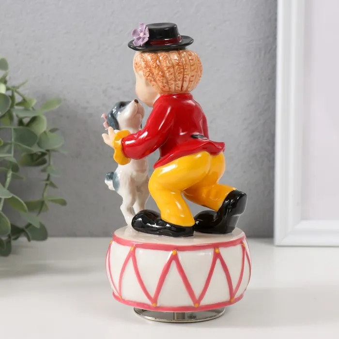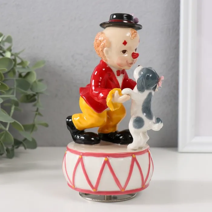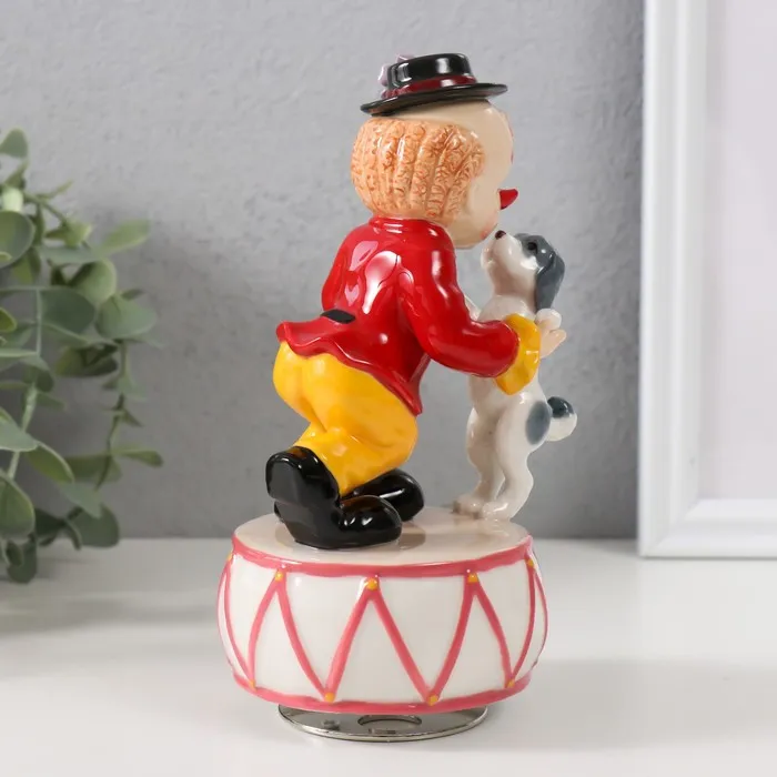 Фигурка музыкальная механическая «Клоун танцует с собачкой на барабане», керамика, 8×9.5×16.5 см — Характеристики