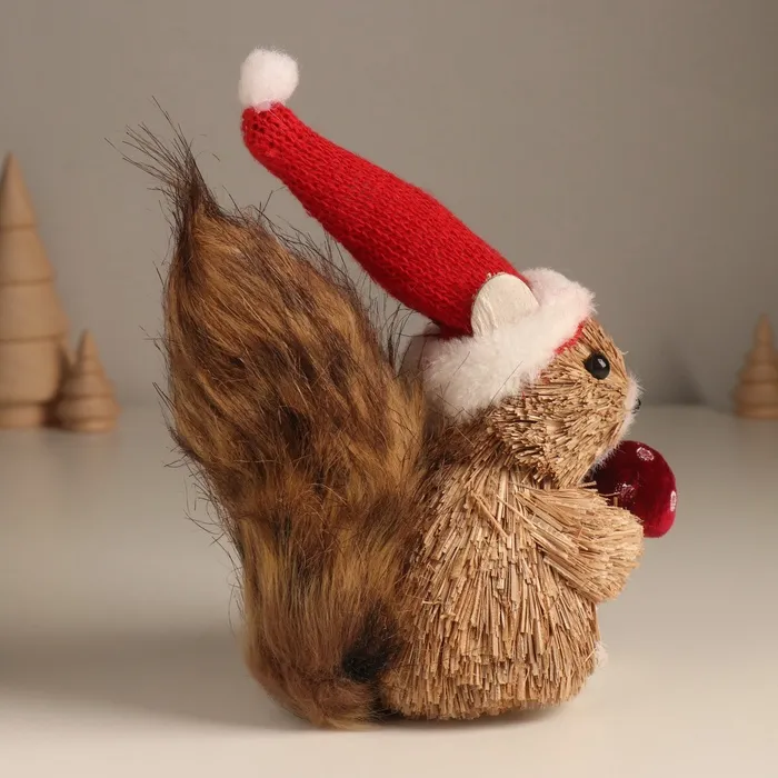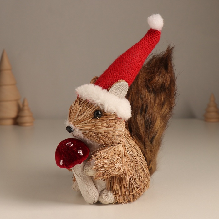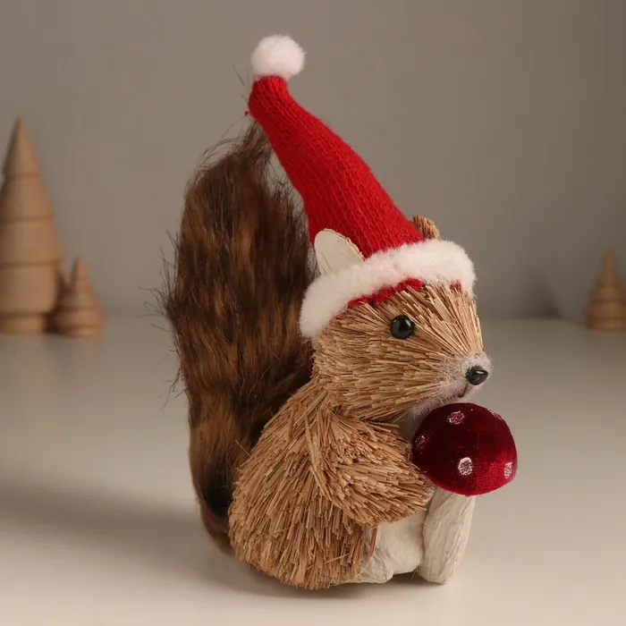 Фигурка новогодняя «Белочка с грибочком в новогоднем колпаке», 8×18×17 см — Характеристики