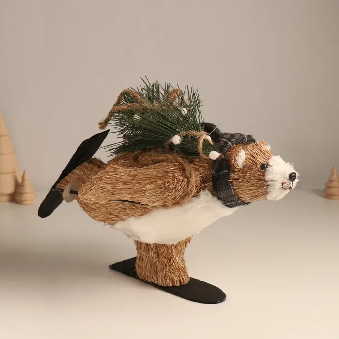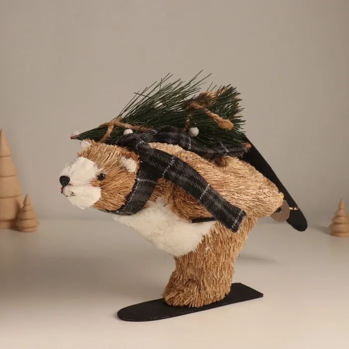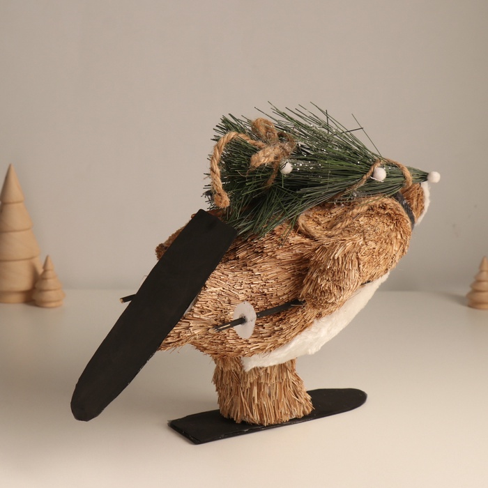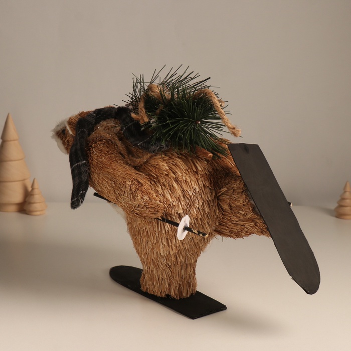 Фигурка новогодняя «Миша едет на лыжах с ёлочкой», 19×28×15 см — Характеристики