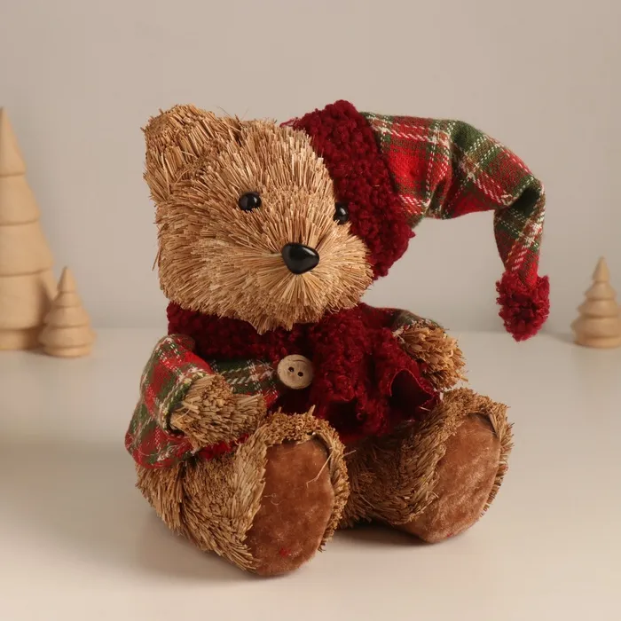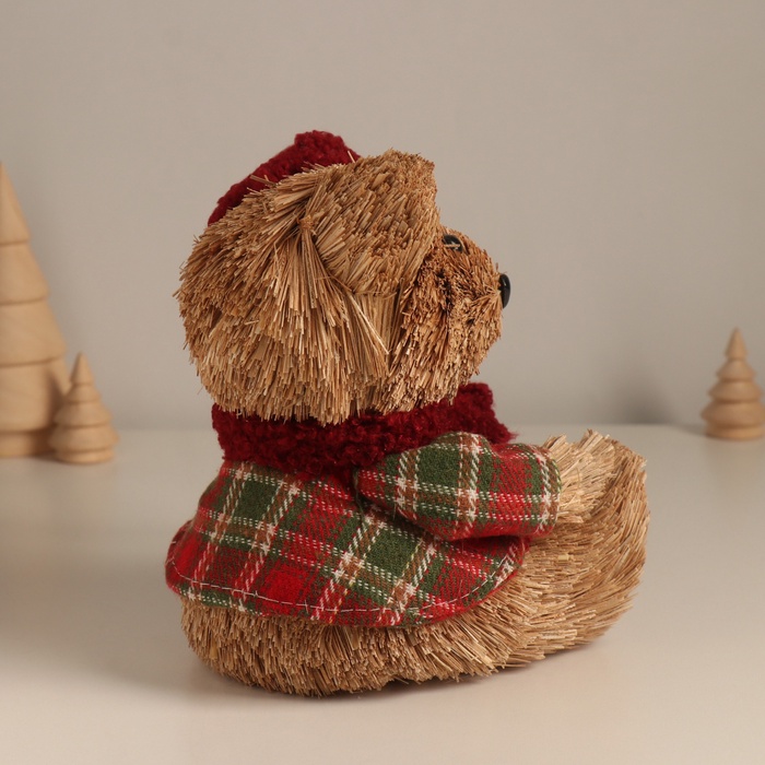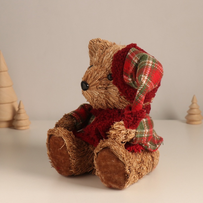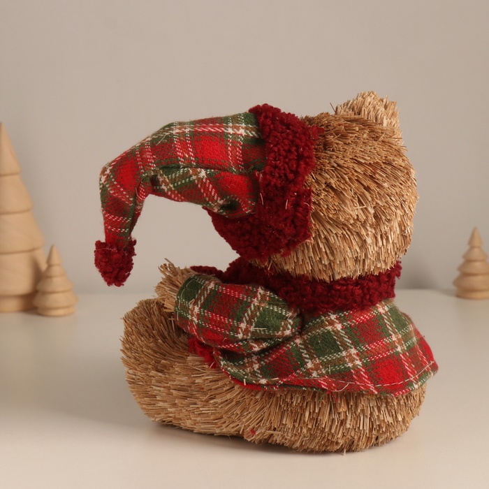 Фигурка новогодняя «Мишка в клетчатом костюме и колпаке», 17×16×13 см — Характеристики