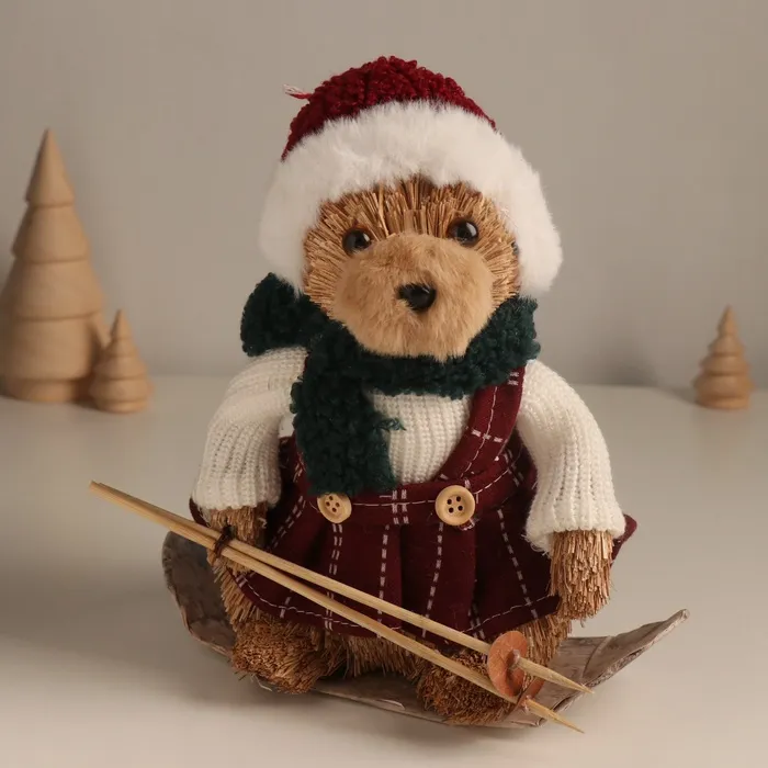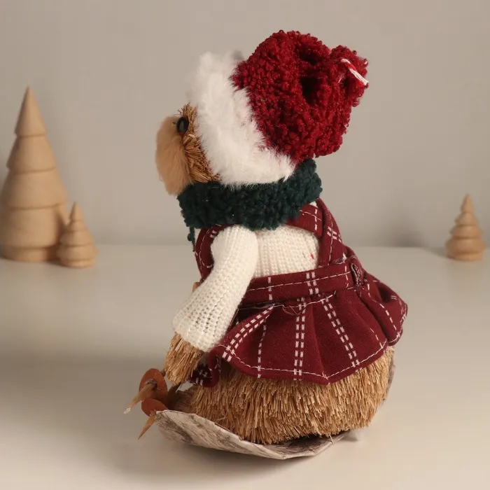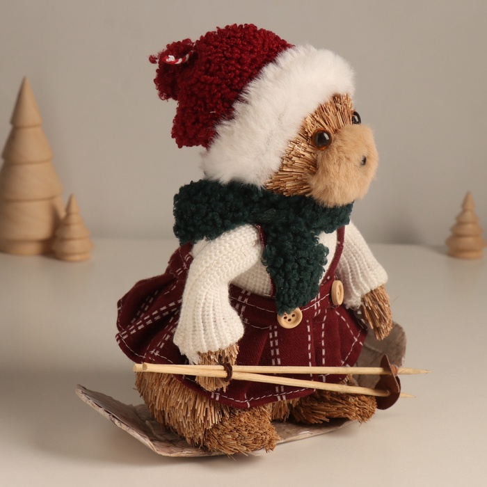 Фигурка новогодняя «Мишка в зимнем сарафане на лыжах», 20×19×11.5 см — Характеристики