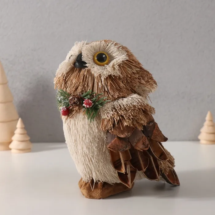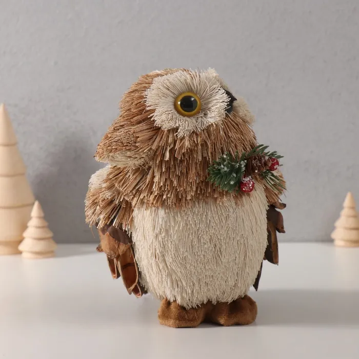 Фигурка новогодняя «Совёнок с шишкой и еловой веточкой на грудке», 12×14×17 см — Характеристики