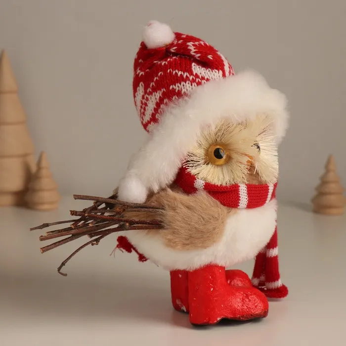 Фигурка новогодняя «Совёнок в шапке-ушанке и шарфе», 15×8.5×17.5 см — Характеристики
