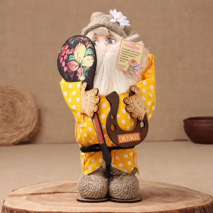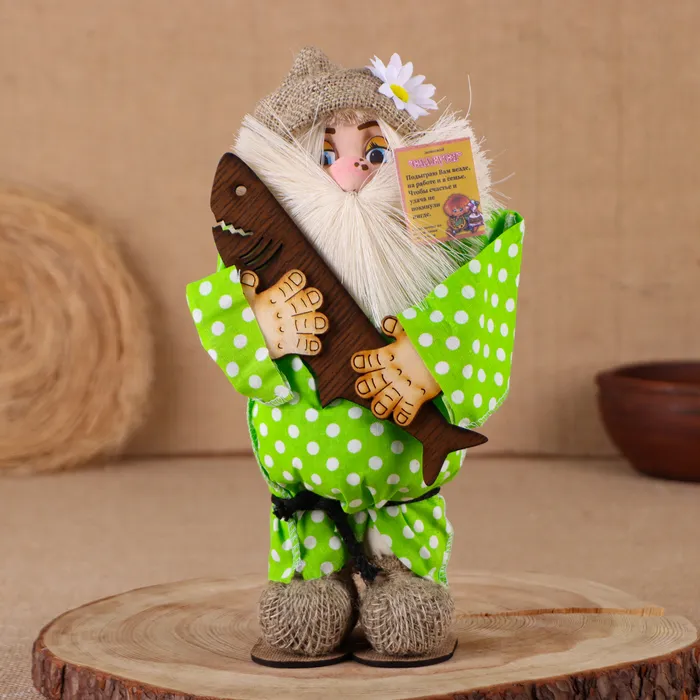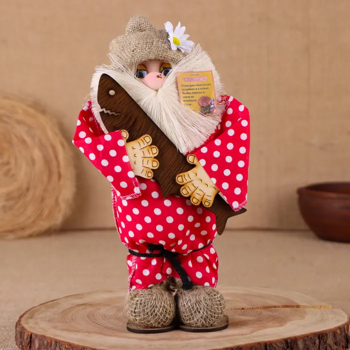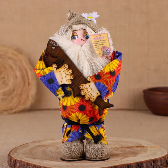 Фигурка-оберег «Домовой. Славуся в льняном колпаке, с рыбой», 30×22×10 см, МИКС — Характеристики