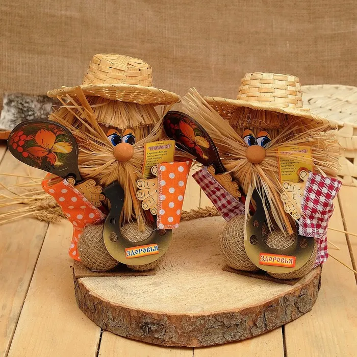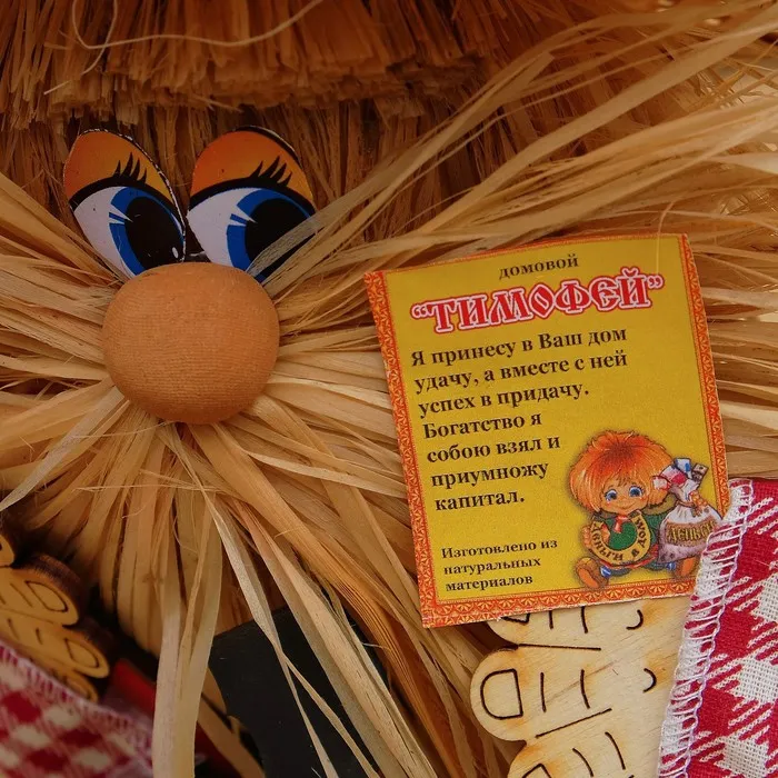 Каждый домовёнок уникален и имеет своё значение и смысл. Изготовлены домовые и обереги из природных материалов и по старинным технологиям. Для их создания используют такие материалы как, древесина, мешковина, сизаль, цветы, семечки и другие декоративные элементы. Все эти материалы в особом сочетании приносят успех, достаток, любовь, благополучие, как в домашнее, так и офисное помещение.