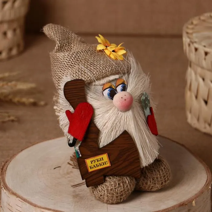 Фигурка-оберег «Домовой. Василек в льняном колпаке, с топором», 23×15×8 см, МИКС — Характеристики