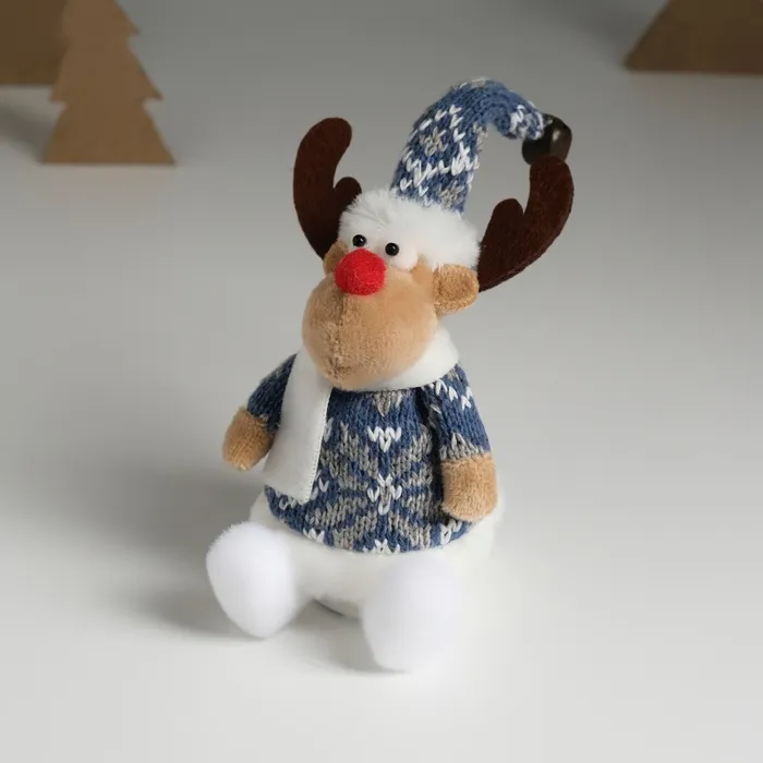 Фигурка «Олень в вязаной синей шубке», 7.5×8×13.5 см — Характеристики