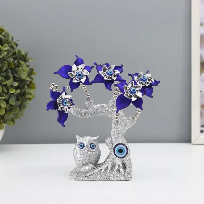 Фигурка от сглаза «Цветущее дерево с филином» станет отличным дополнением к вашему дому. Её серебристый и синий цвета гармонично впишутся в любой интерьер, создавая атмосферу уюта и защиты. Статуэтка не только украсит ваше пространство, но и будет символизировать благополучие и защиту от негатива. Подарите себе или близким частичку спокойствия и гармонии с этой уникальной фигуркой.