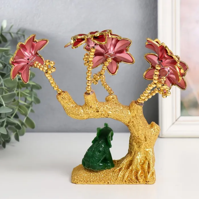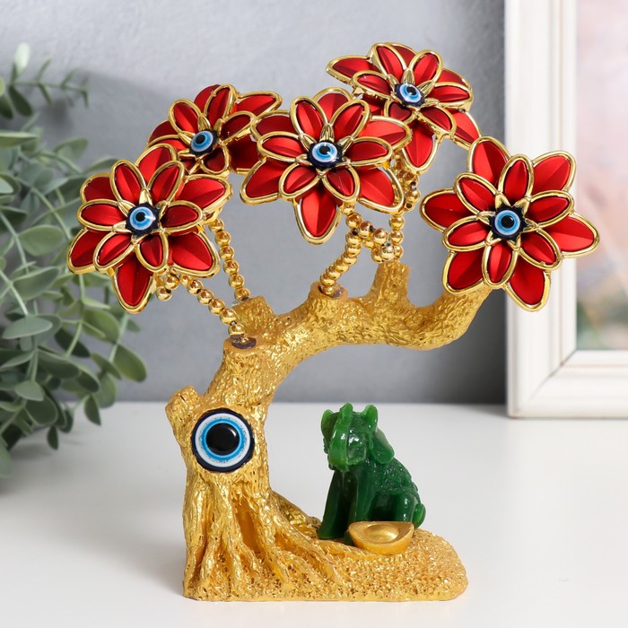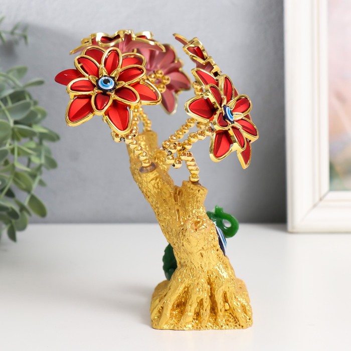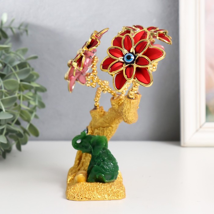 Фигурка от сглаза «Цветущее дерево. Слон со слитком золота», золото, красный, 17 см — Характеристики