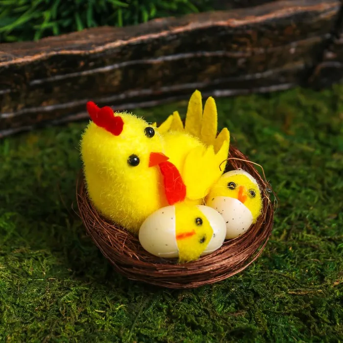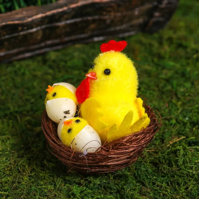 Фигурка пасхальная «Петушок с цыплятами в гнезде», 7×7×7 см — Характеристики