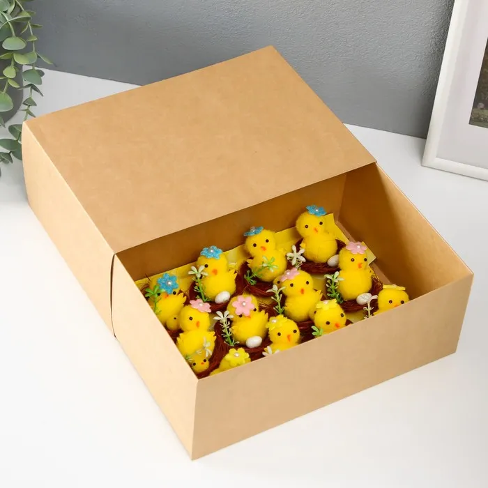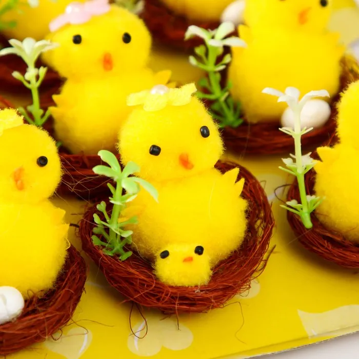 Превратите пасхальные праздники в уютное торжество с очаровательными фигурками цыплят в гнёздах. Этот набор из 12 миниатюрных композиций создаст атмосферу весеннего тепла и пробуждающейся природы в вашем доме. Каждый элемент продуман до мелочей — от пушистых цыплят до искусно выполненных цветочков в гнёздах из сизали.
