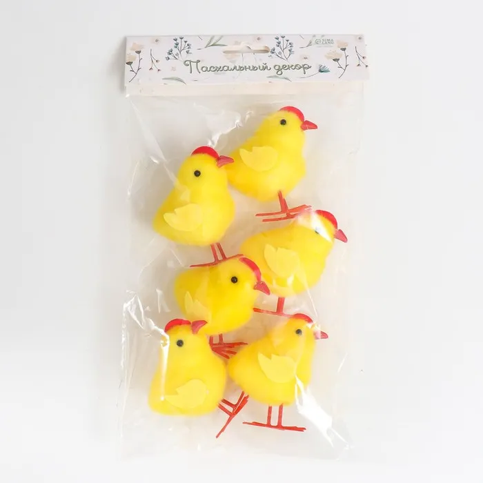 Фигурка пасхальная «Цыплята с гребешком», набор 6 шт., жёлтый 3×6×6.5 см — Характеристики