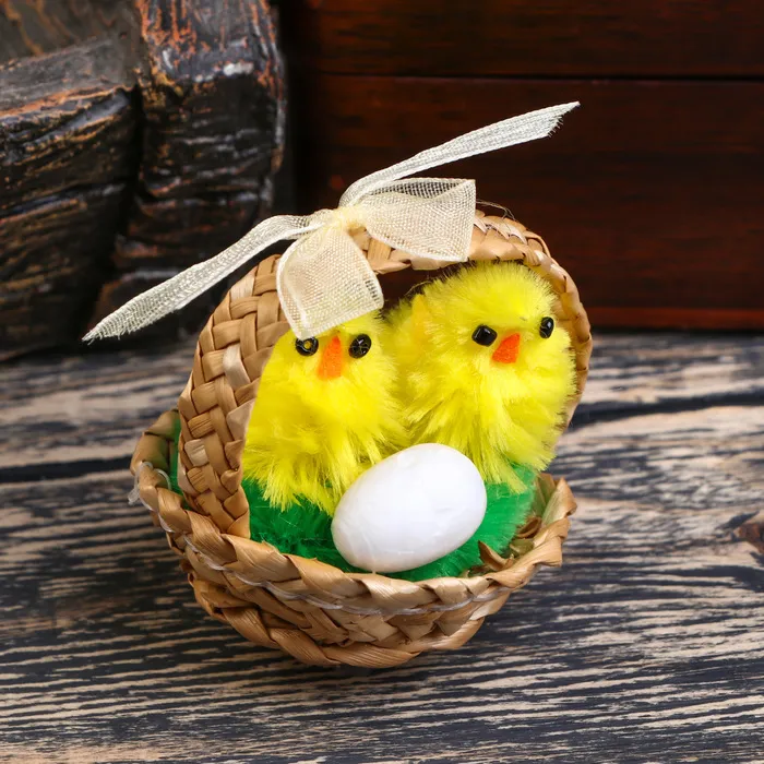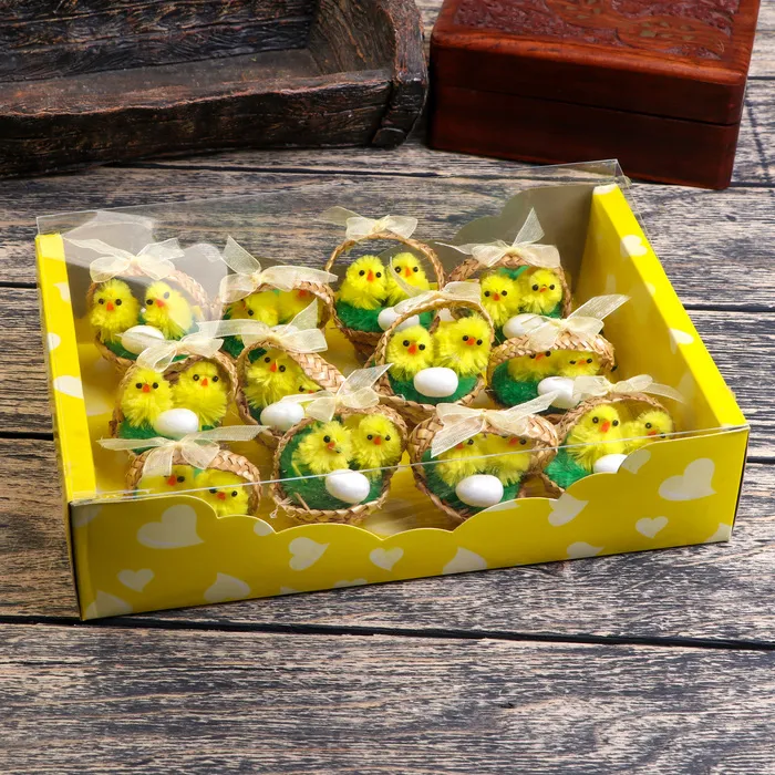 Фигурка пасхальная «Цыплята в корзинке с яичком», набор 12 шт., 5×5×5 см — Характеристики