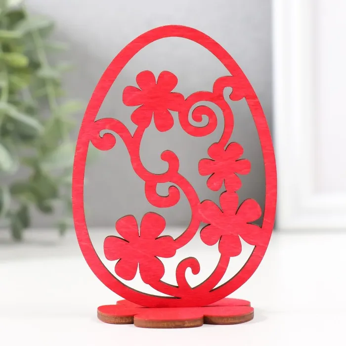 Фигурка «Пасхальное яйцо на подставке с узором», 6.5×4.7×9.3 см, набор 2 детали, красный — Характеристики
