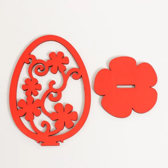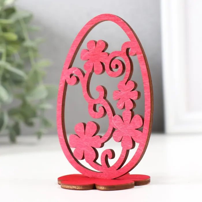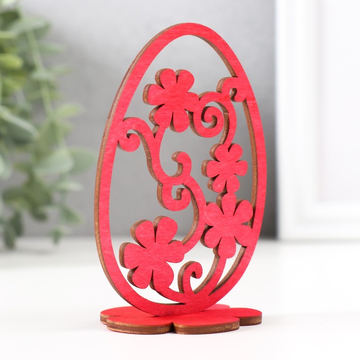 Фигурка «Пасхальное яйцо на подставке с узором», 6.5×4.7×9.3 см, набор 2 детали, красный