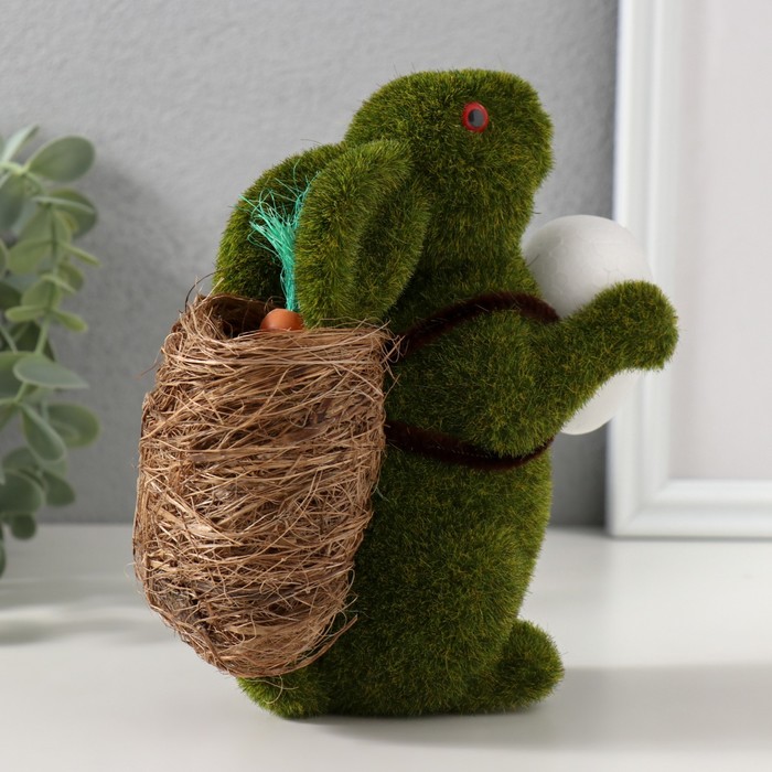 Фигурка пенопласт «Кролик зелёный с яичком и корзиной с морковью», 15×7×15.5 см — Характеристики