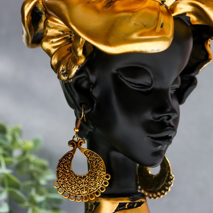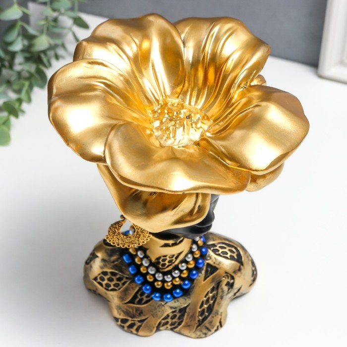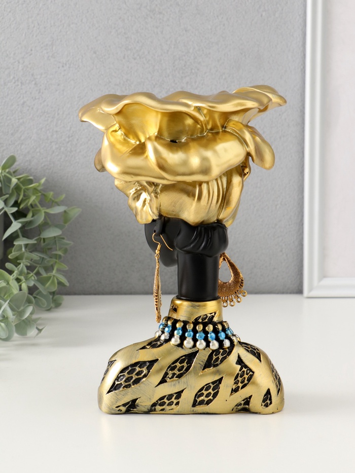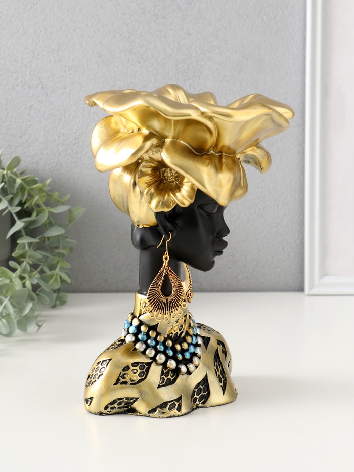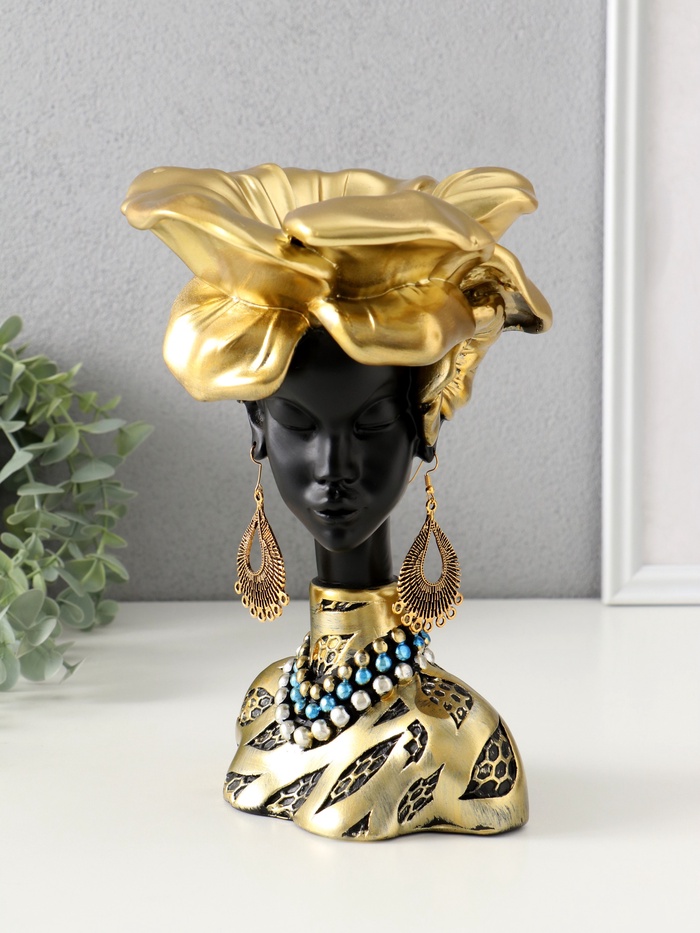 Фигурка-подставка для мелочей «Бюст. Девушка из Африки», полистоун, чёрный с золотом, 23×15×15 см — Характеристики