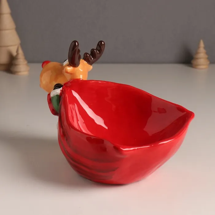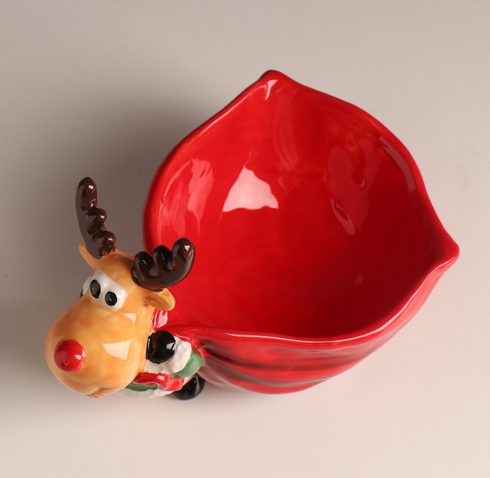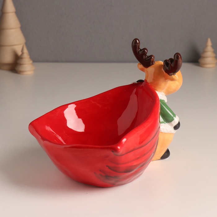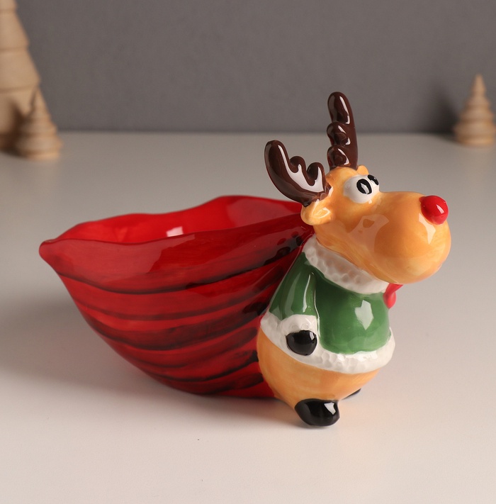 Фигурка-подставка для мелочей керамика «Лось в зелёной шубе с большим красным мешком», 12.5×19.1×13.1 см — Характеристики