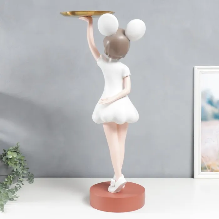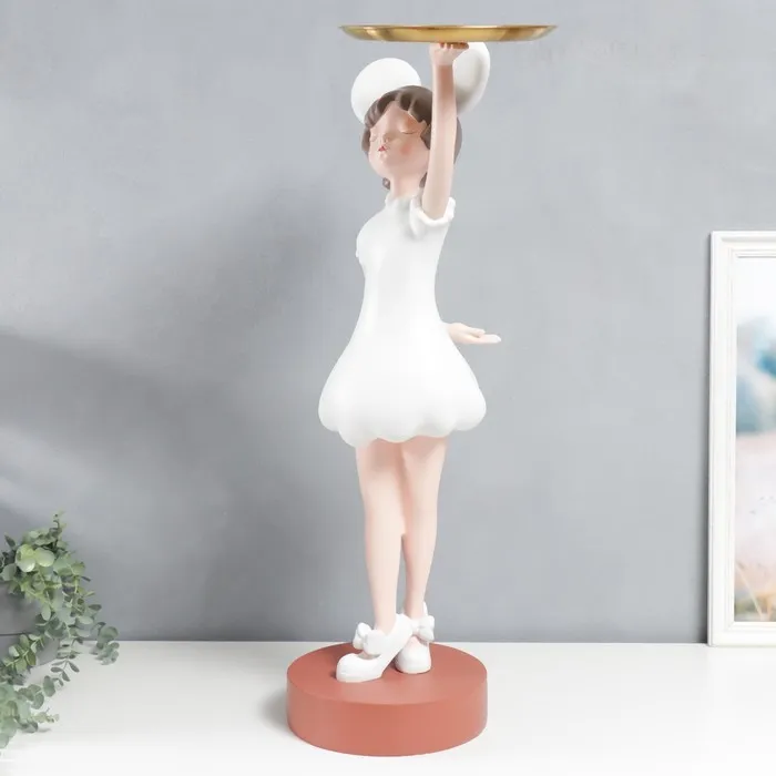 Изготовленная из качественного полистоуна, фигурка отличается прочностью и долговечностью. Тщательно проработанные детали - от милых ушек до складок на платьице - демонстрируют высокое качество исполнения. Блюдо в руках фигурки - это не только элемент дизайна, но и удобная подставка для хранения мелочей.