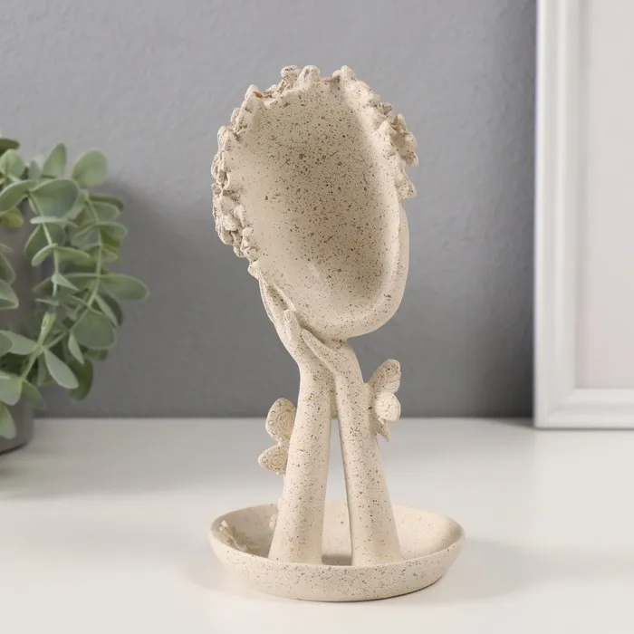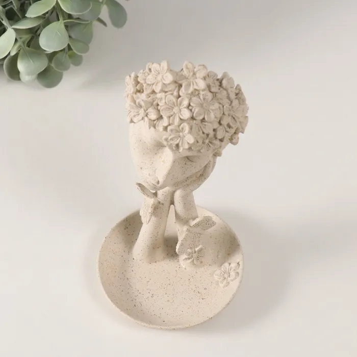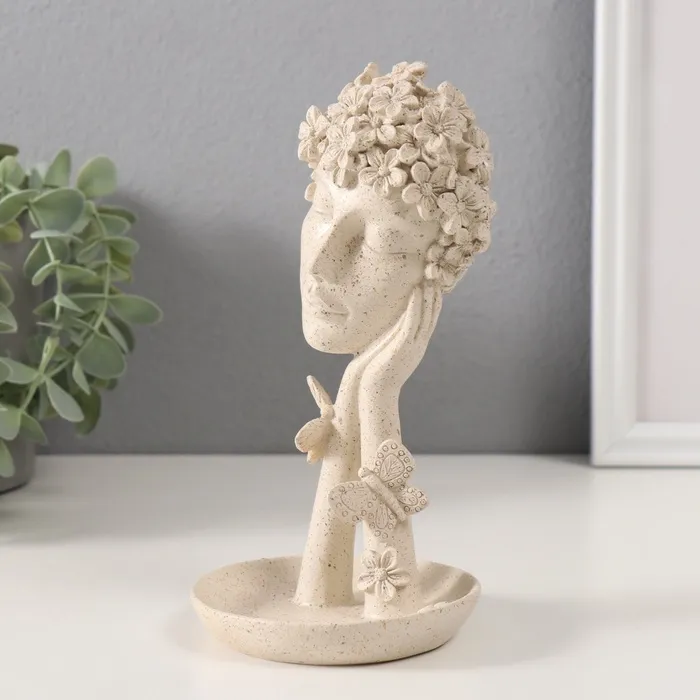 Фигурка-подставка для мелочей полистоун «Бюст. Девушка с цветами на голове», белый в крапинку, 9.5×9.5×18.5 см — Характеристики
