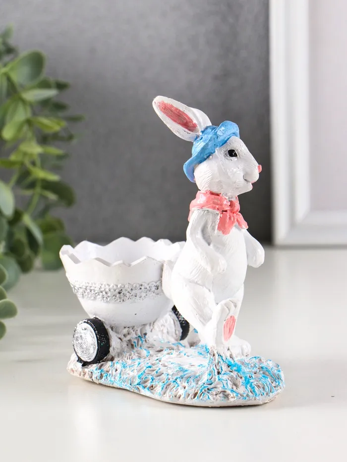 Выбор этой фигурки — это решение за стиль и комфорт. Она не только украсит ваш дом, но и станет надёжным помощником в организации пространства, даря вам и вашим близким моменты тепла и радости. Позвольте этому очаровательному зайке с тележкой стать частью вашего пространства, привнося в него нотки уюта и практичности.