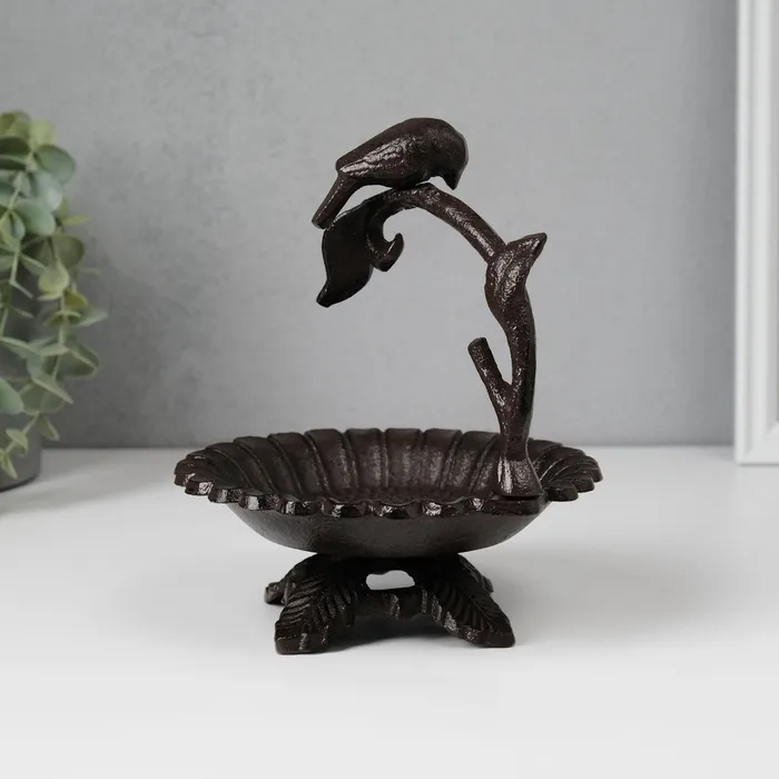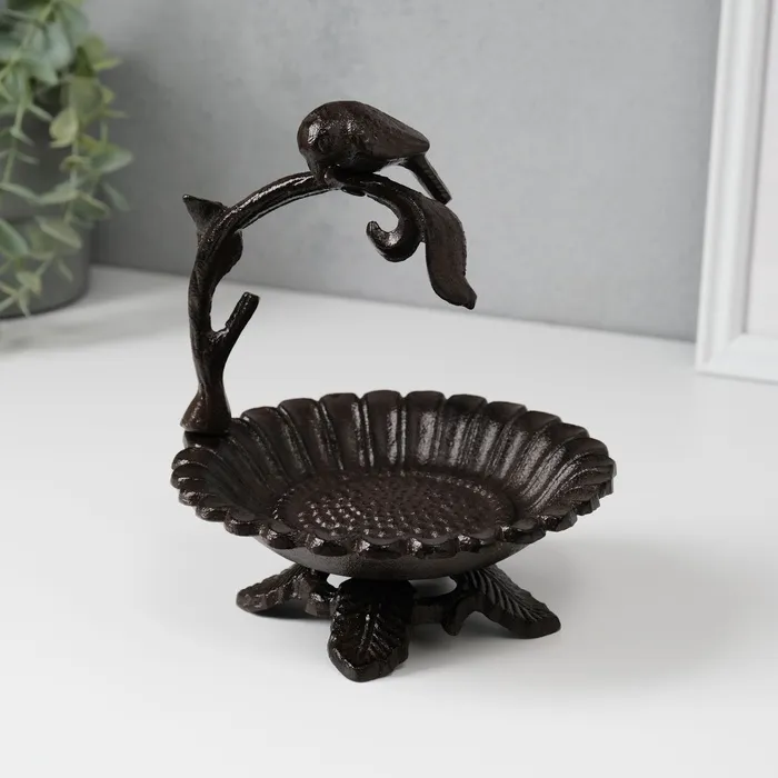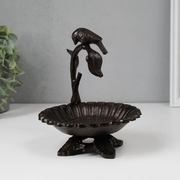 Фигурка-подставка для мелочей «Птичка на ветке над цветком», чугун, 17×15×13.5 см — Характеристики