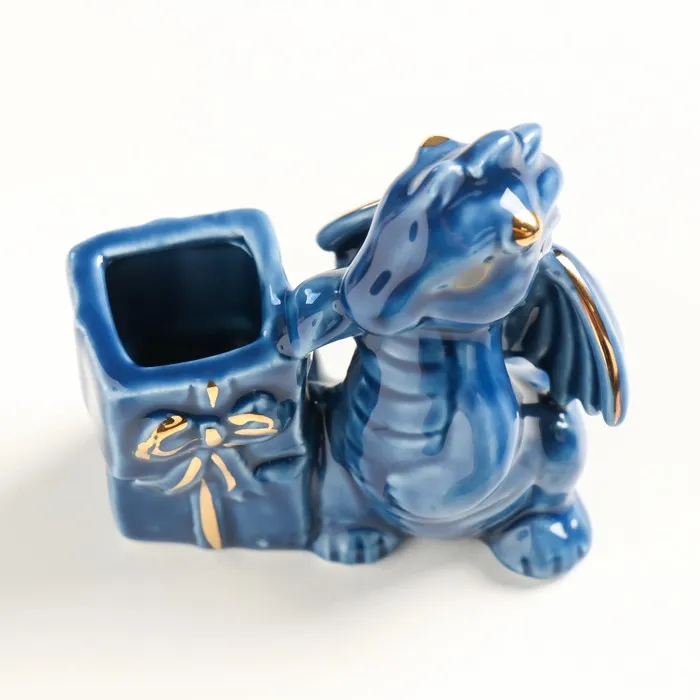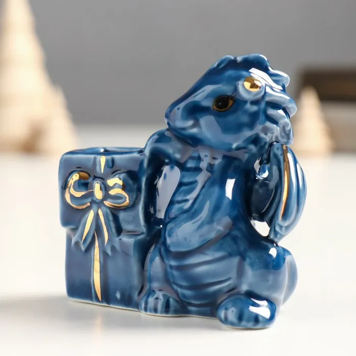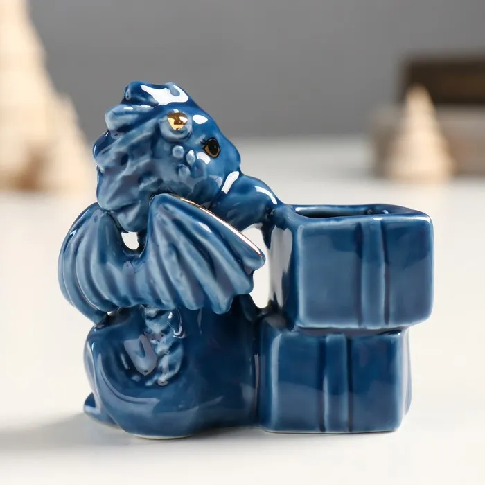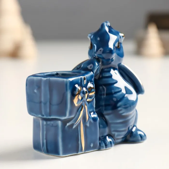 Фигурка-подставка для зубочисток «Дракоша с подарками», керамика, сине-золотой, 4×6.5×7 см — Характеристики