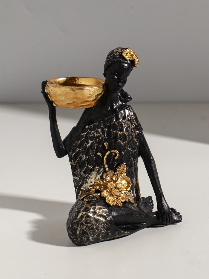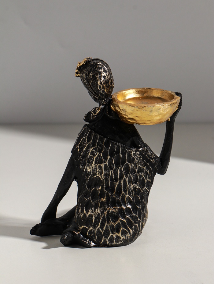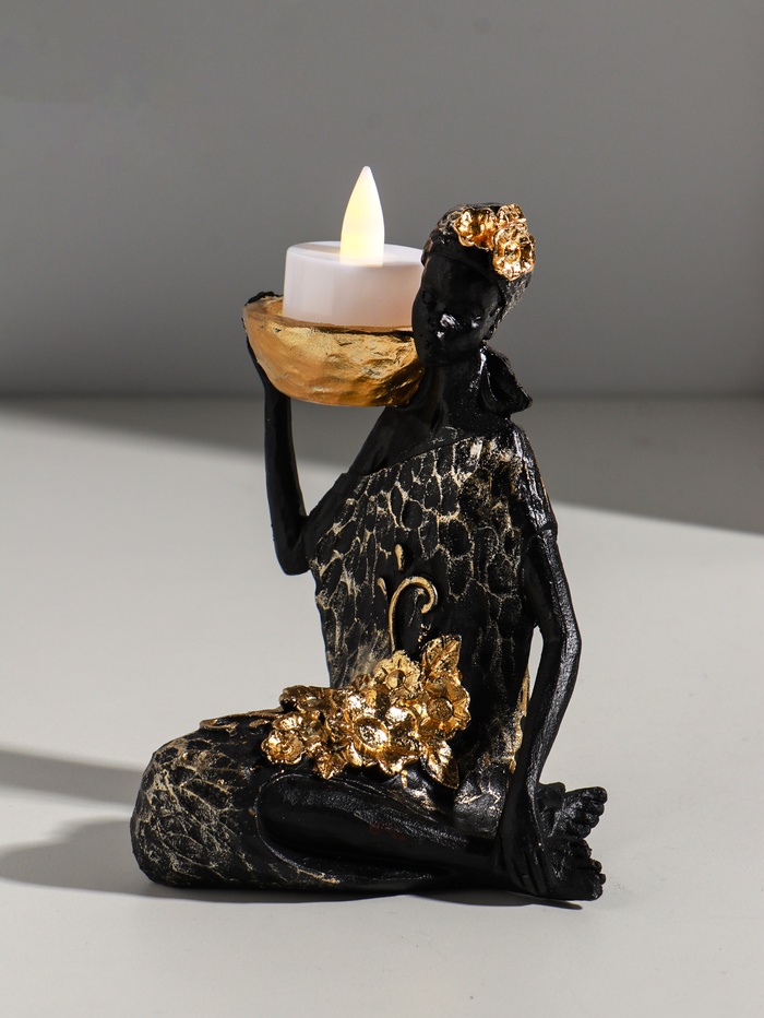 Эта изящная фигурка-подсвечник станет акцентом в интерьере и создаст особенное настроение. Образ женщины в платье с золотыми цветами сочетает элегантность и тёплую энергию. Зажжённая свеча отбрасывает мягкий, живой свет, подчёркивая тонкую проработку деталей и игру контрастов чёрного и золотого. Универсальный дизайн делает её уместным подарком к 8 Марта, дню рождения или просто в знак внимания.