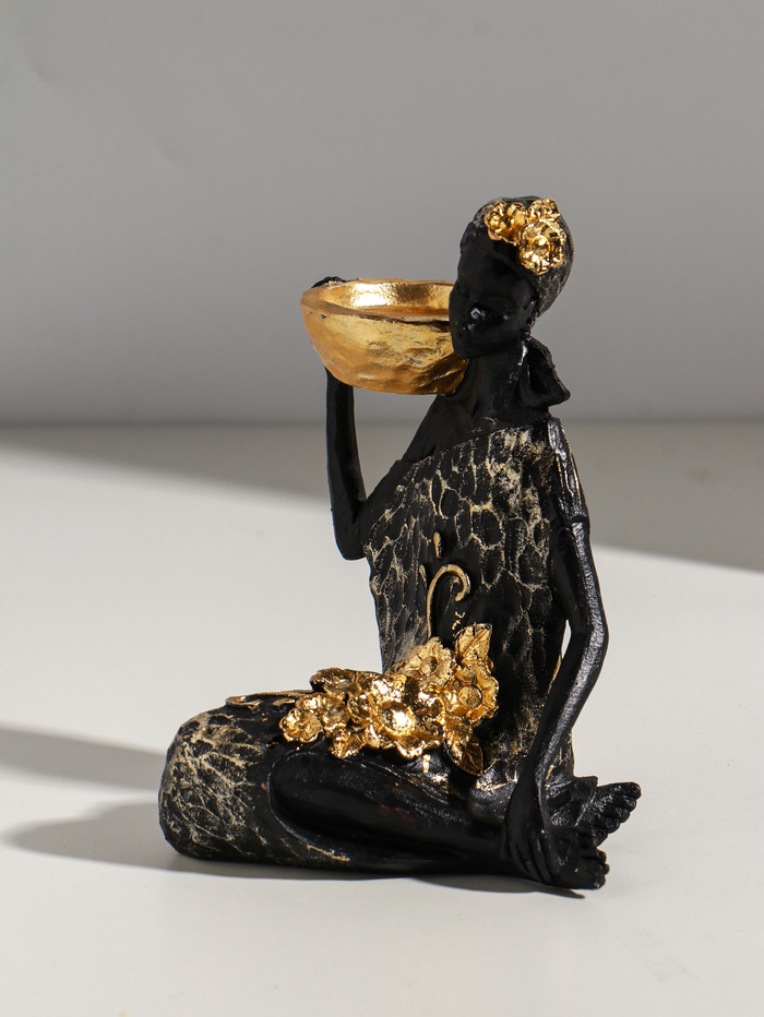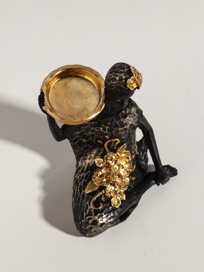 Фигурка - подсвечник на 1 свечу «Африканка в чёрном платье с цветами с золотом», полистоун, d=4.5 см, 11×13×16 см — Характеристики
