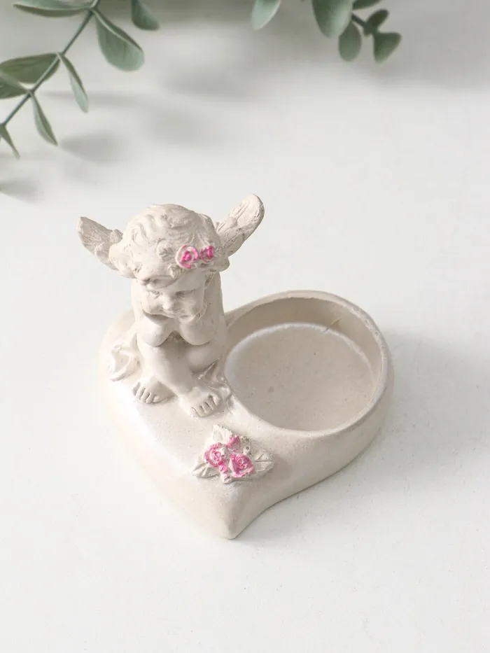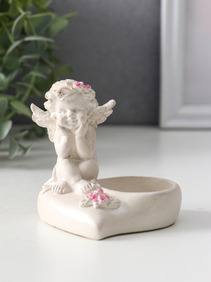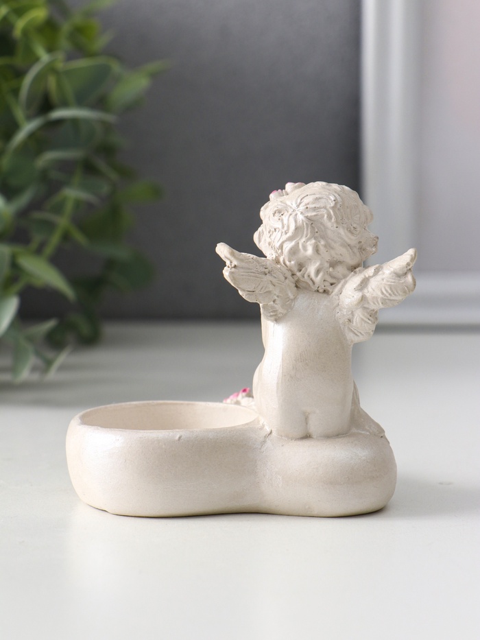 Представляем изящный подсвечник в форме ангела, нежно держащего сердце, который станет идеальным акцентом в вашем интерьере. Его компактные размеры (8×7×7.5 см) делают его универсальным элементом декора, подходящим для размещения на полке, столе или каминной полке. Перламутровое покрытие добавляет изделию особого сияния и утончённости, создавая атмосферу тепла и уюта. Изготовленный из высококачественного гипса, он сочетает в себе прочность и лёгкость.