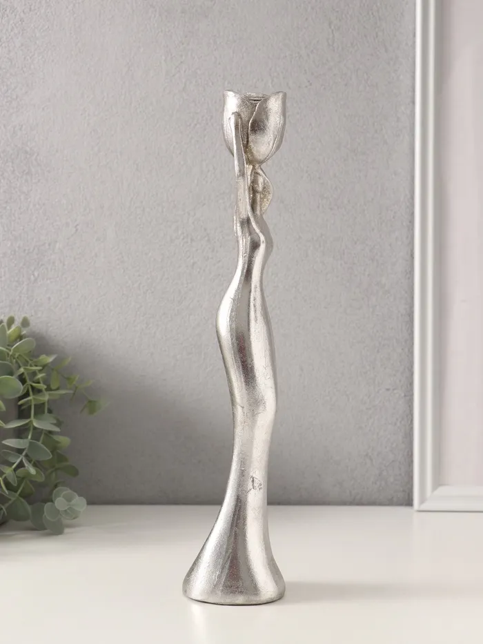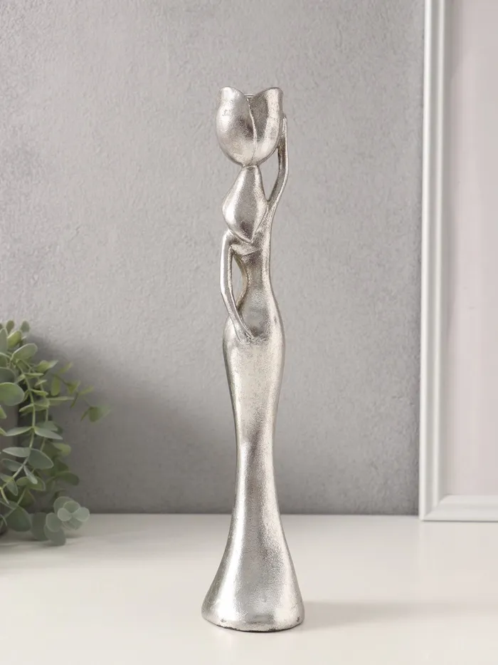 Фигурка-подсвечник на 1 свечу «Девушка с тюльпаном», полистоун, серебро, 6.5×6.5×32 см — Характеристики